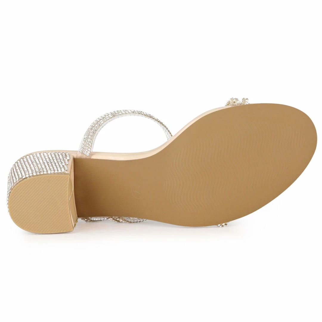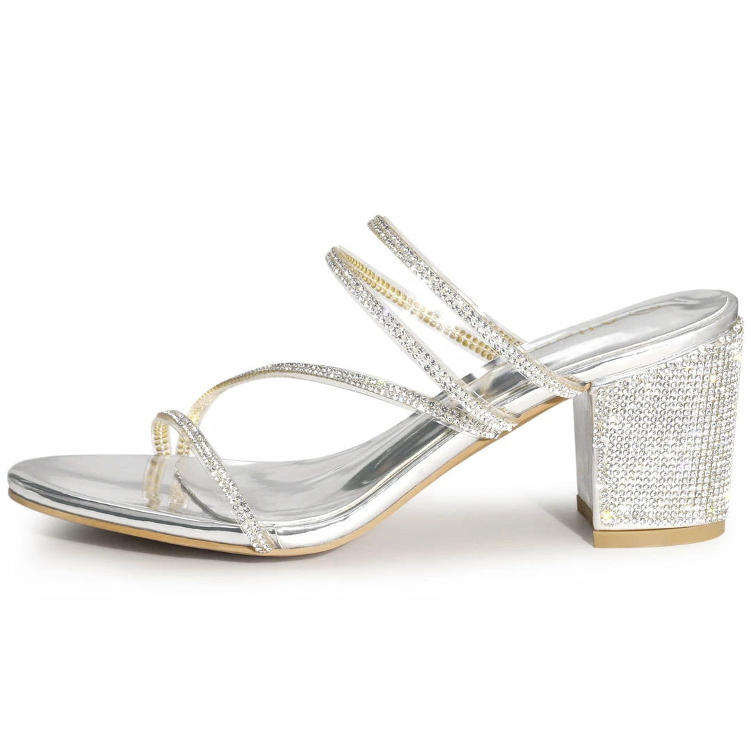 Rhinestone decorative a slide-style sandal for a modern block feel. It is perfect for matching with skinny jeans, dresses, skirts, or leggings. Your options are endless!