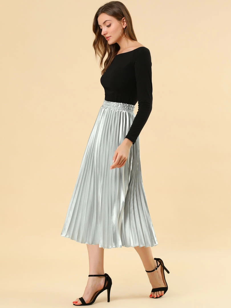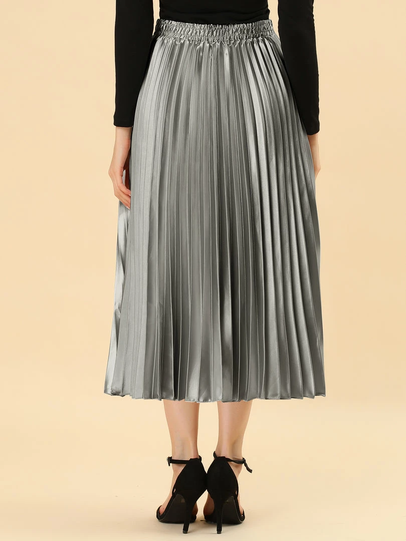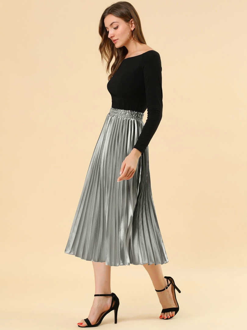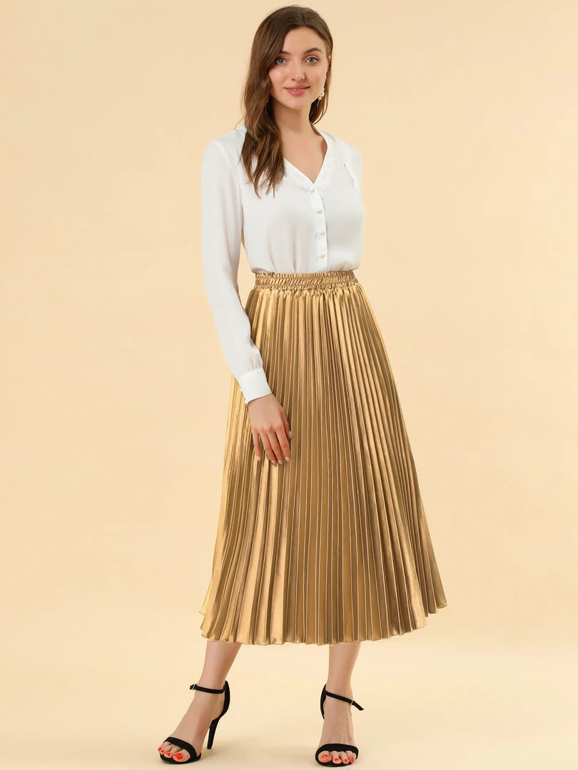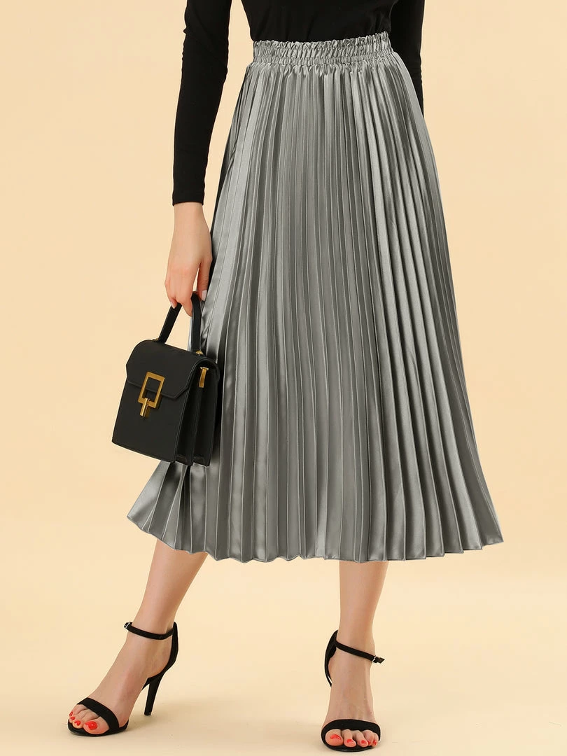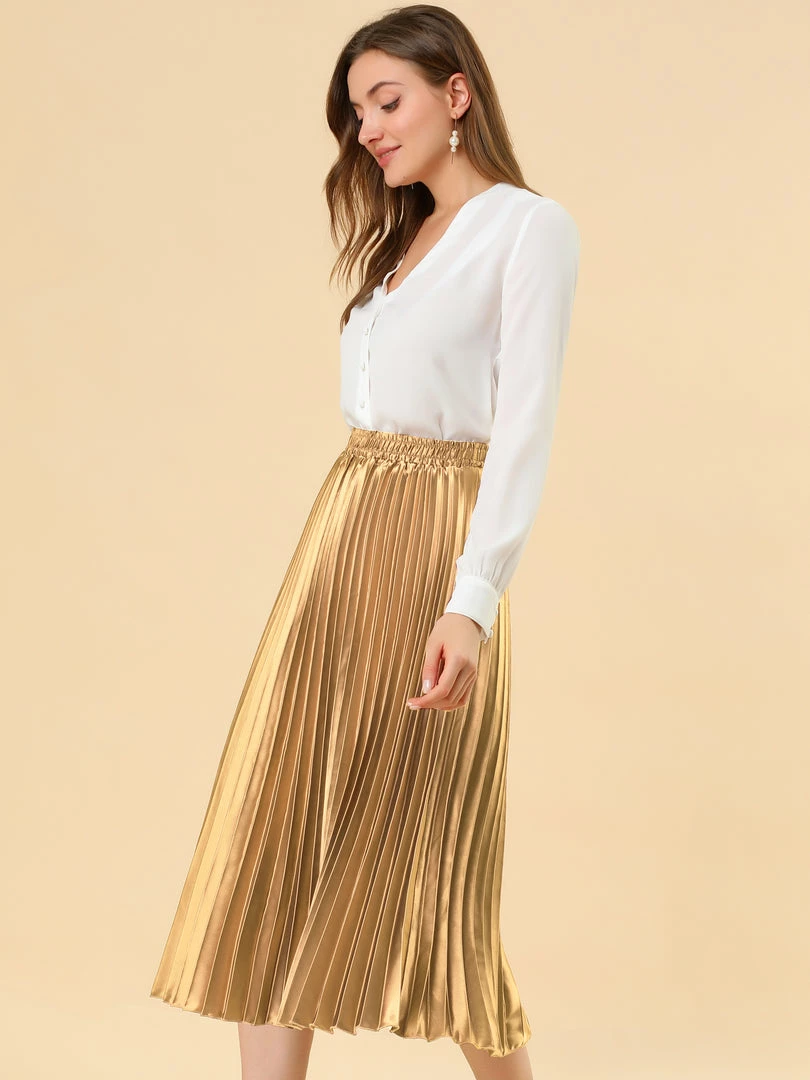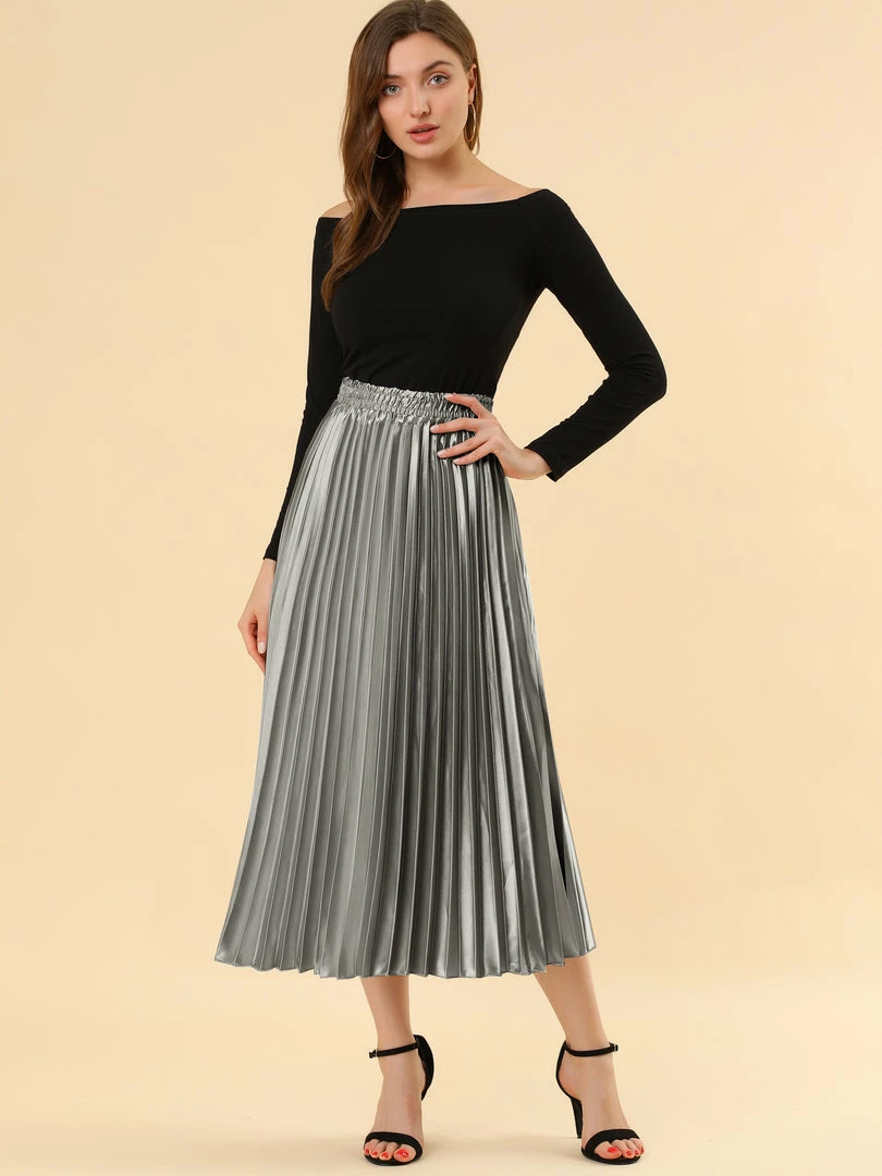• Accordion pleats enhance the dimension and movement of this midi skirt, while the metallic design underscores its sleek style.