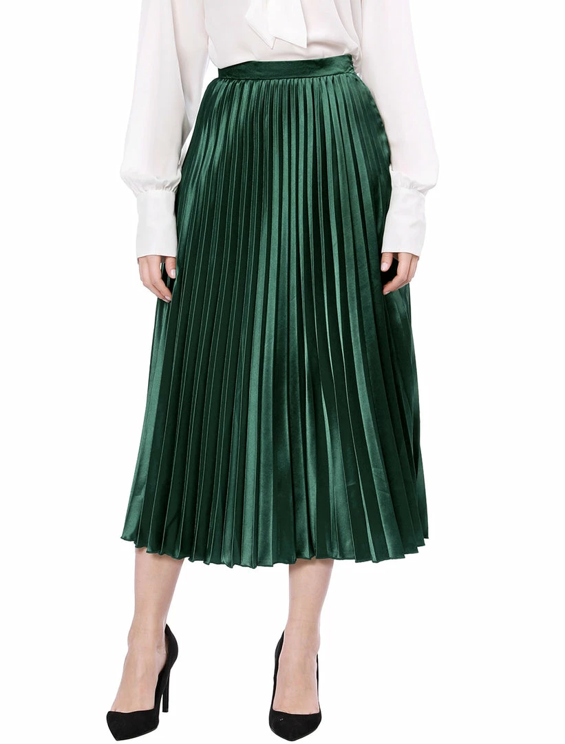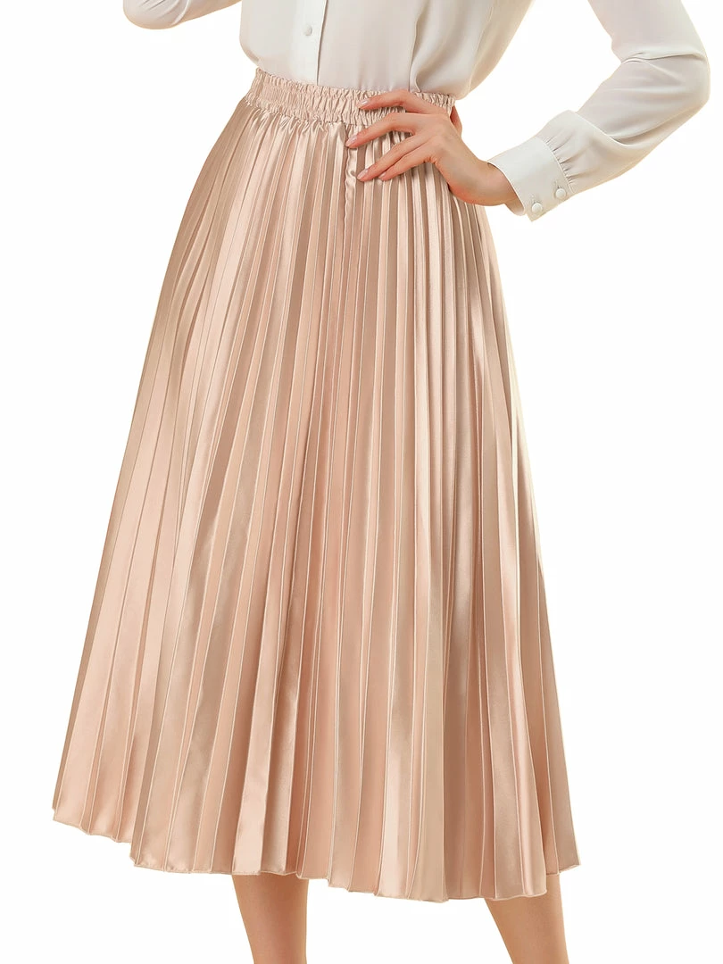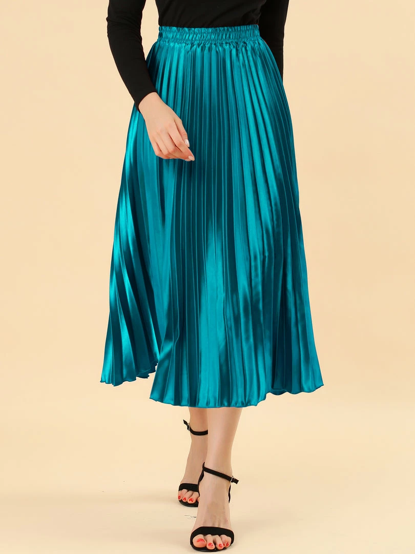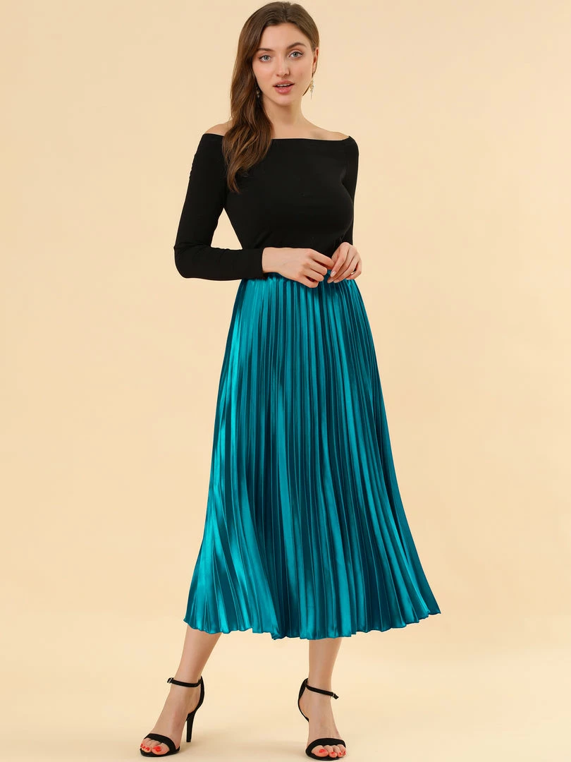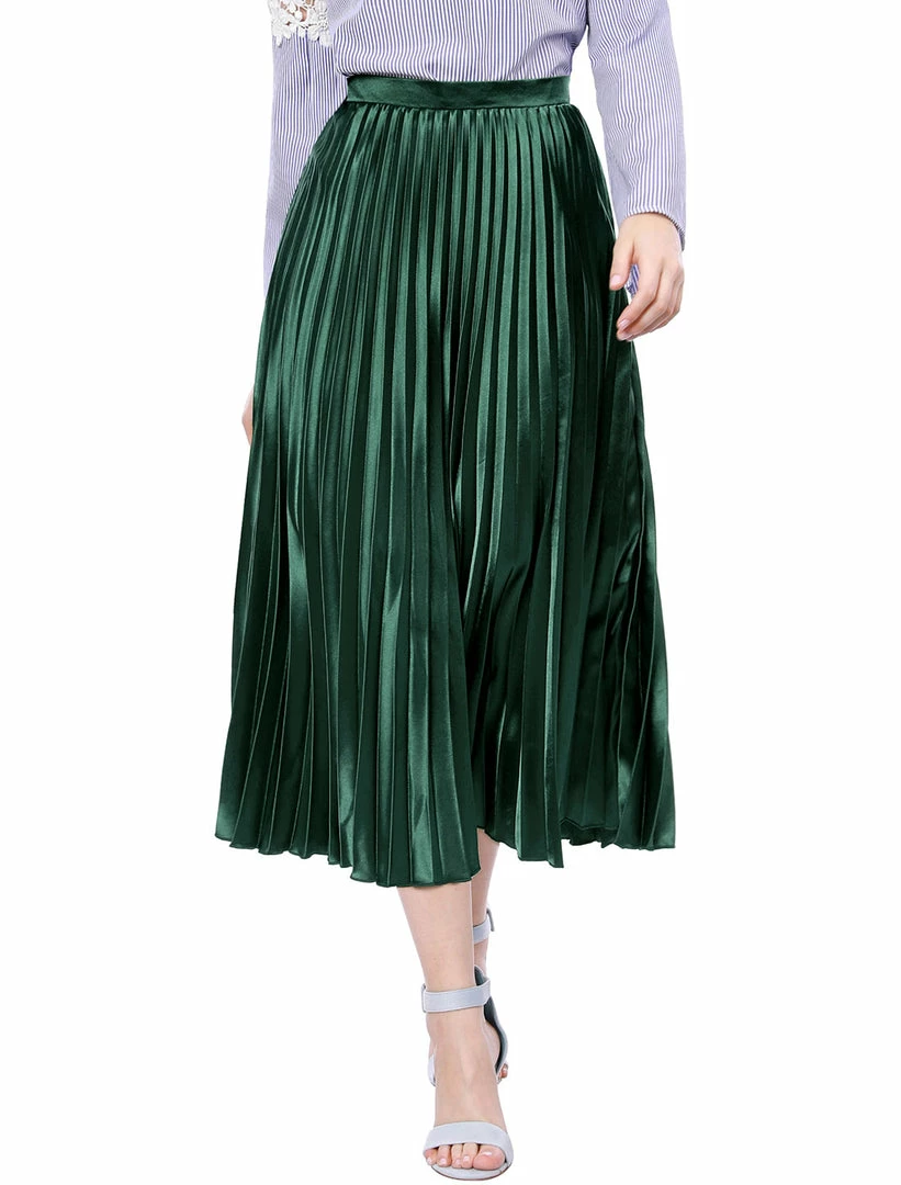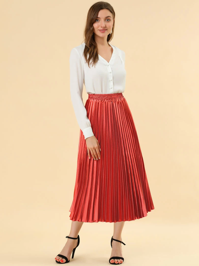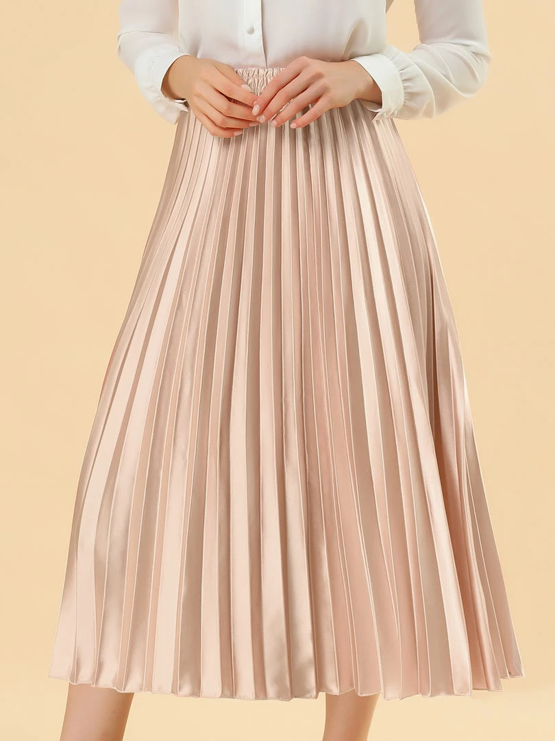 • Accordion pleats enhance the dimension and movement of this midi skirt, while the metallic design underscores its sleek style.
