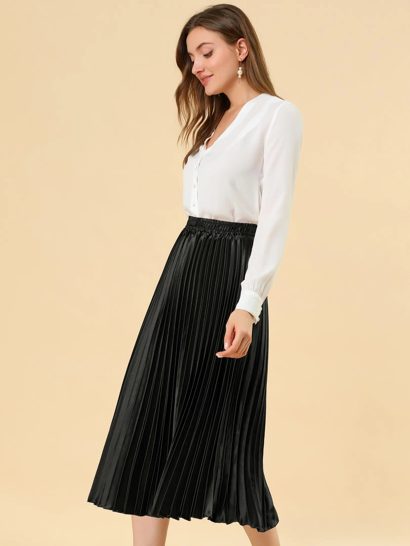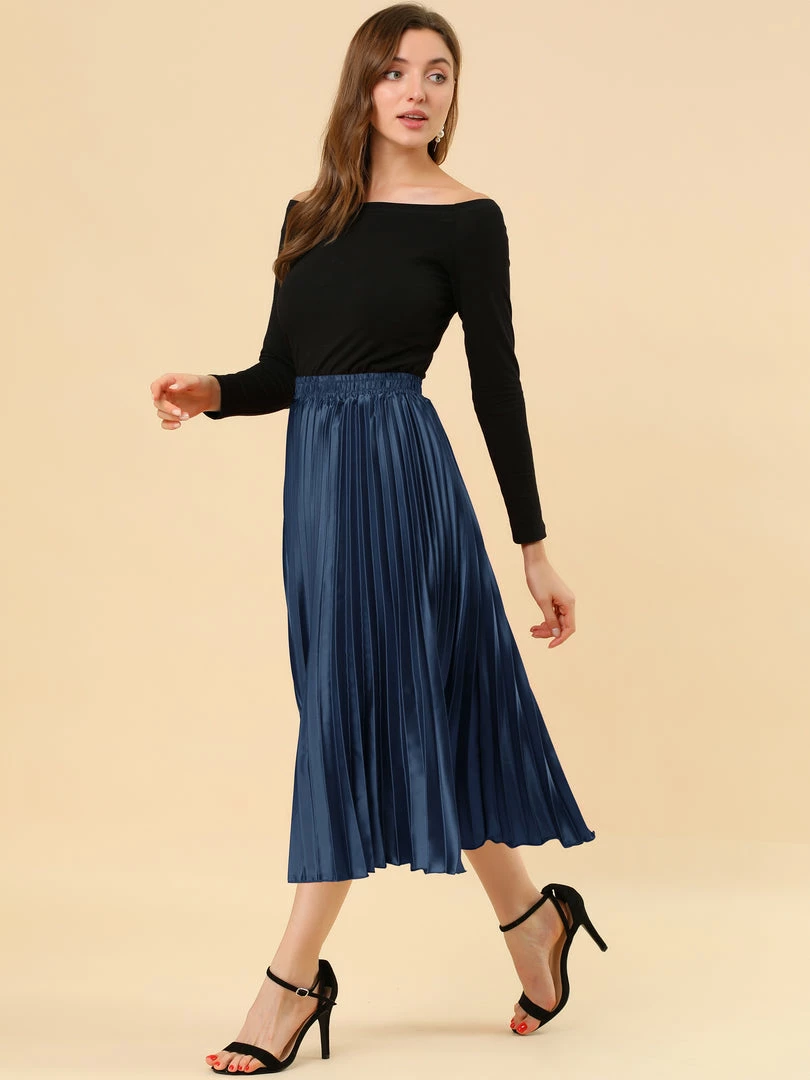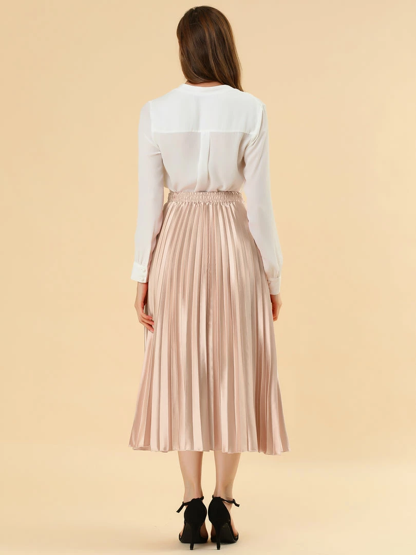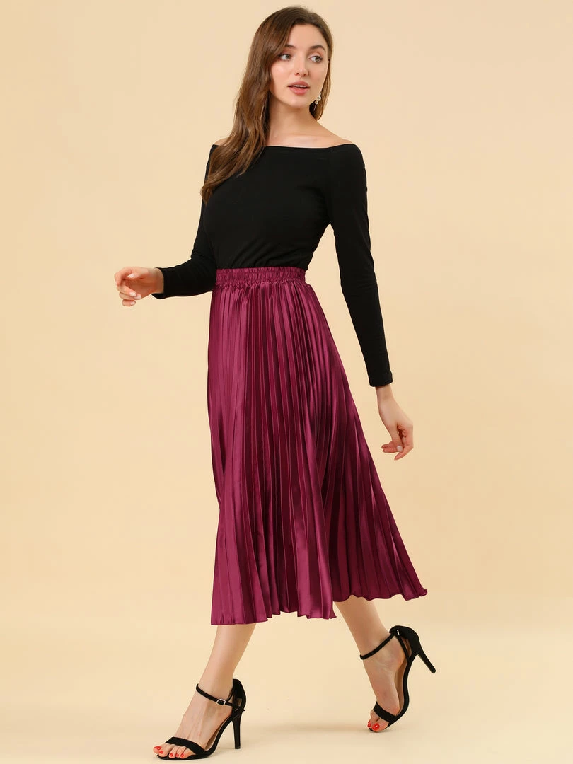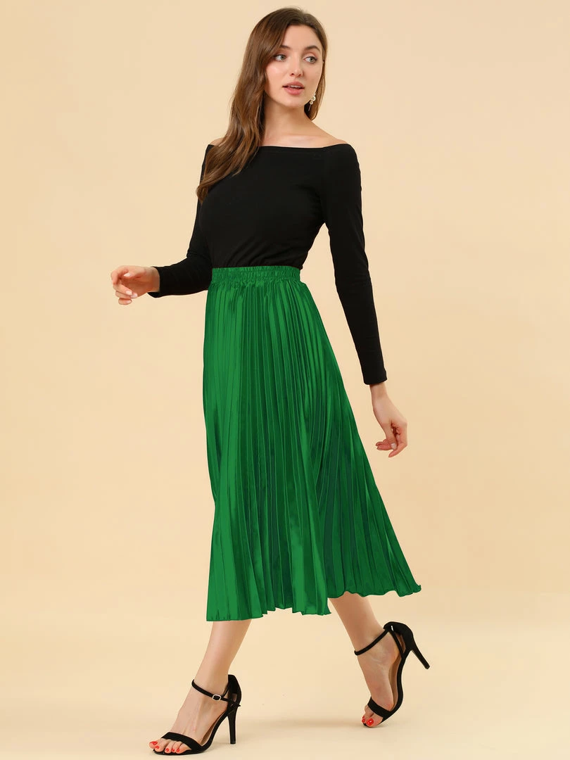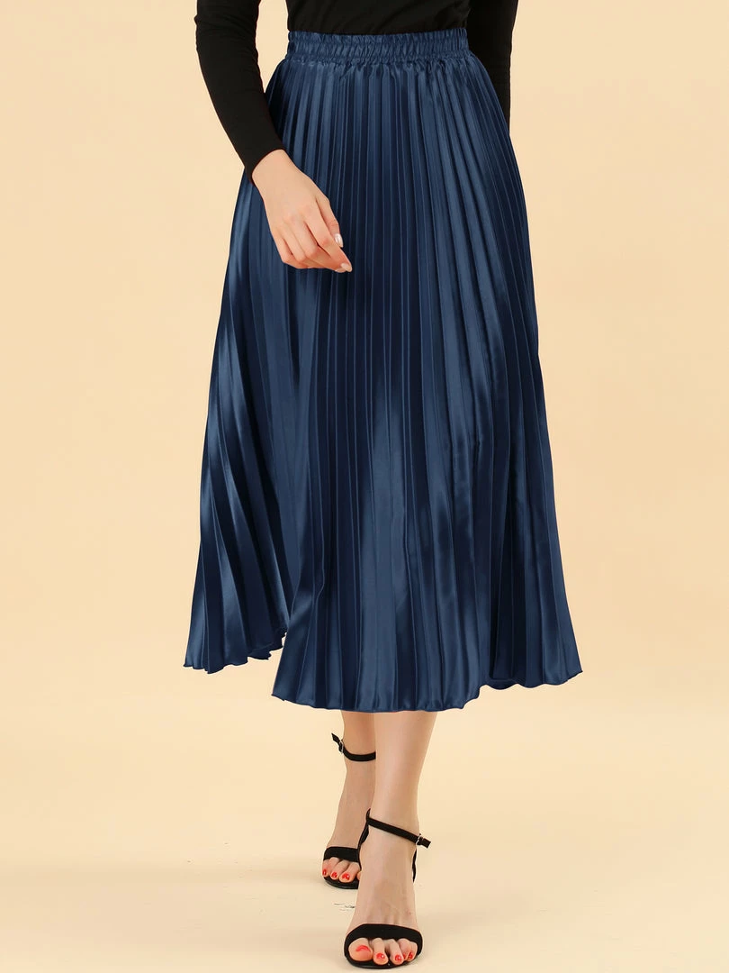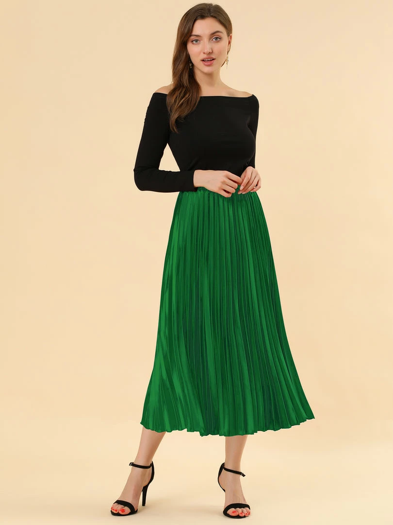 • Accordion pleats enhance the dimension and movement of this midi skirt, while the metallic design underscores its sleek style.