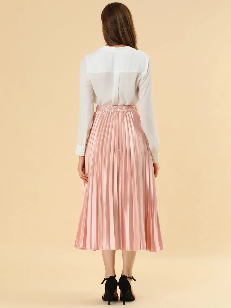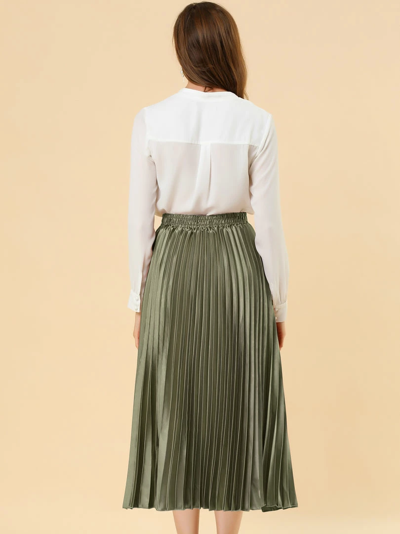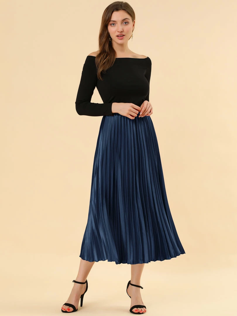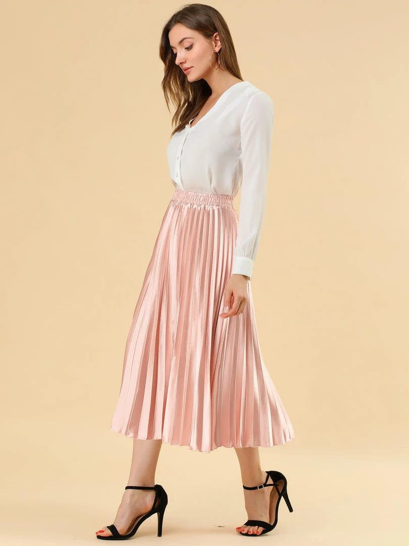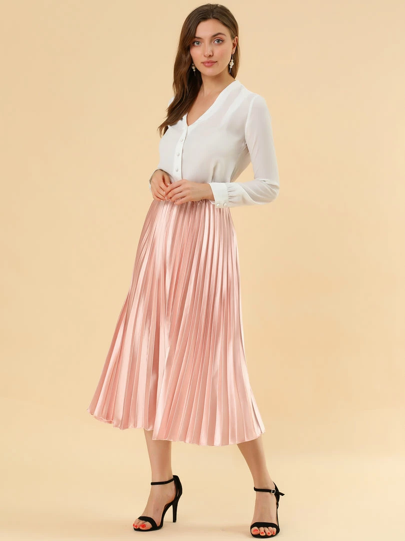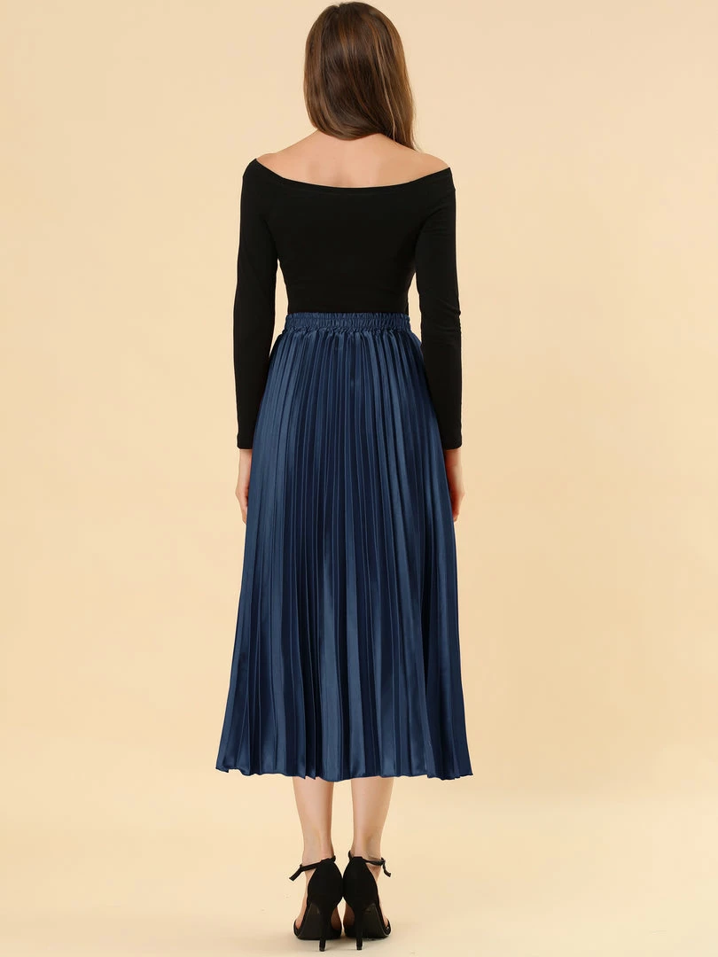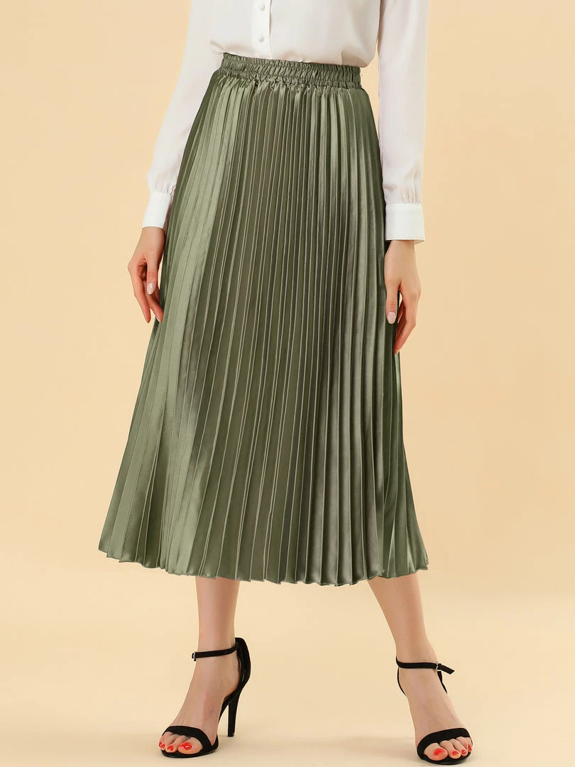 • Accordion pleats enhance the dimension and movement of this midi skirt, while the metallic design underscores its sleek style.