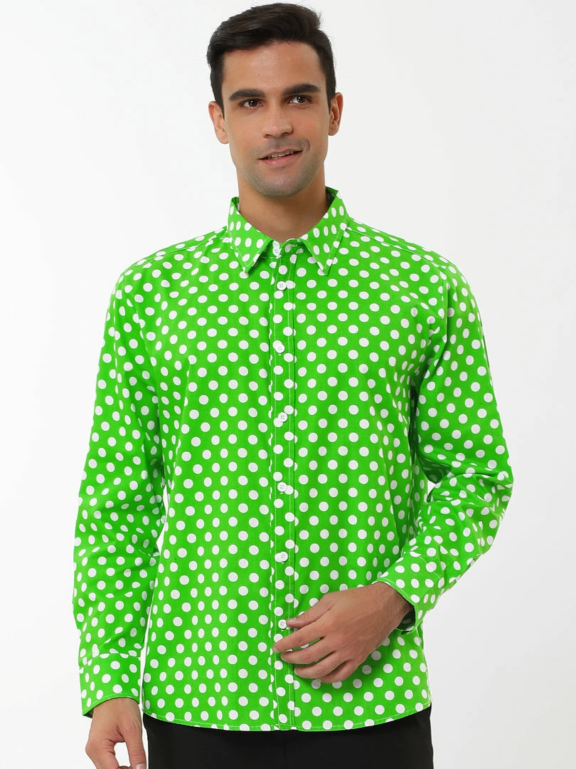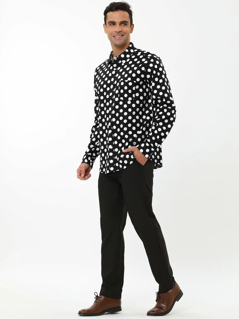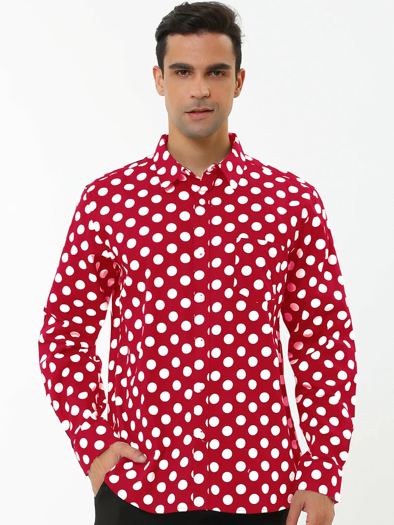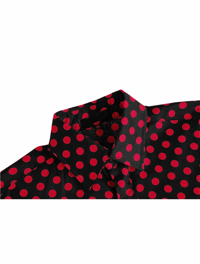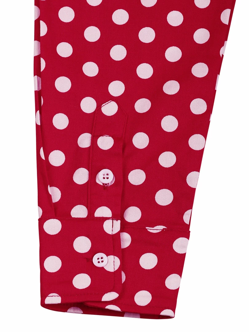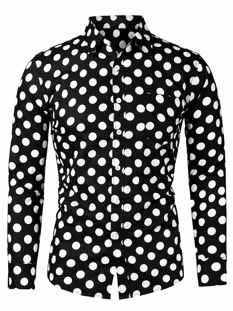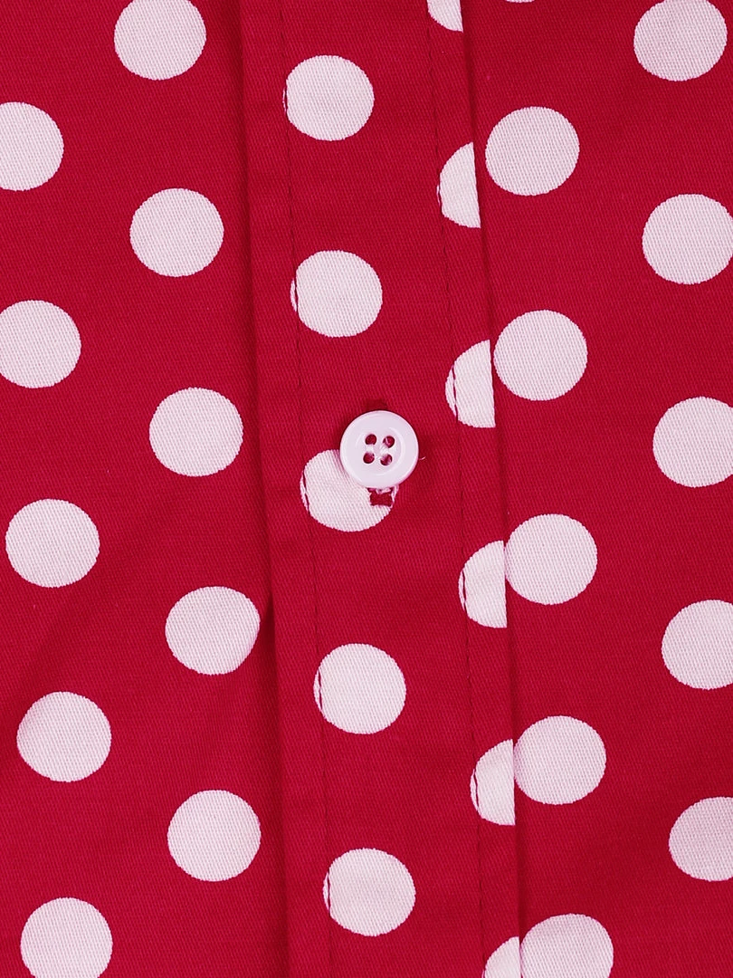 Polka Dots Shirt is a weekend wardrobe essential. This relaxed style has a curved hem, both practical and versatile. With a cotton construction and a fitted cut, this allover oversized dots print button-down features a button-down collar. Complete with buttoned long-sleeves, layer this shirt over a basic tee for a nod to laid back summer style.