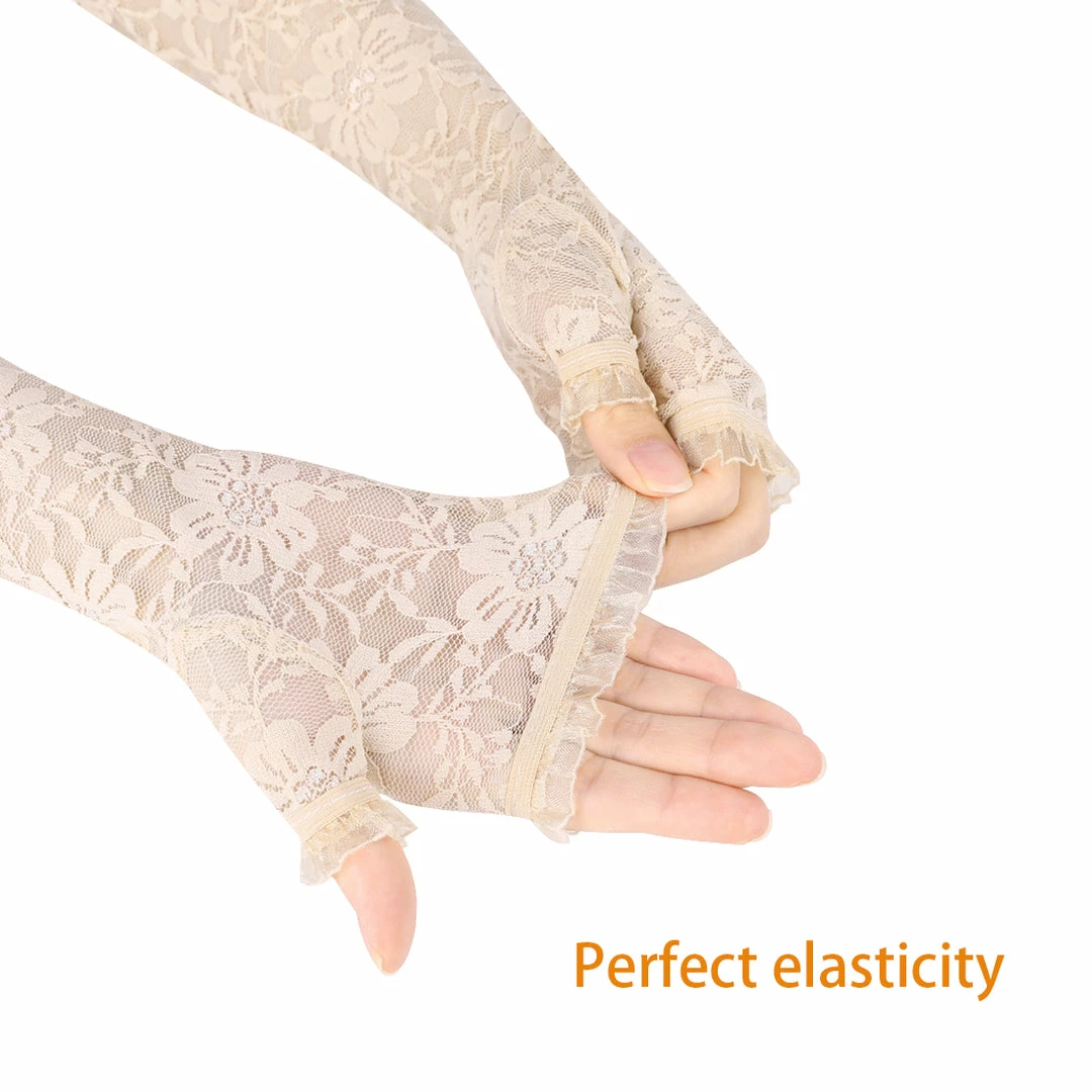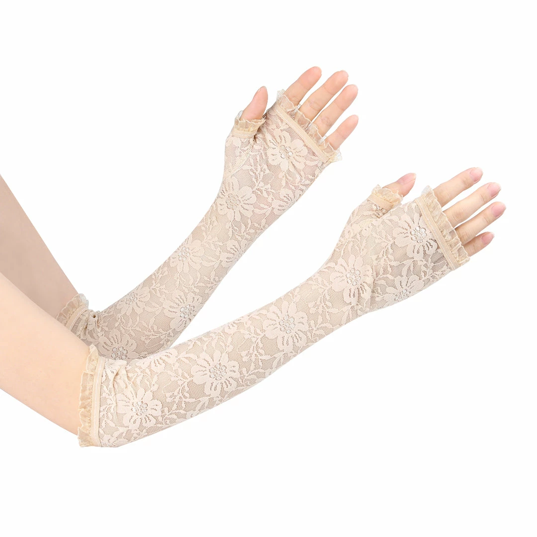 Allegra K UV Protection Thin Lace Sleeves Outdoor Sunscreen Arm Cooling Sleeves For Women