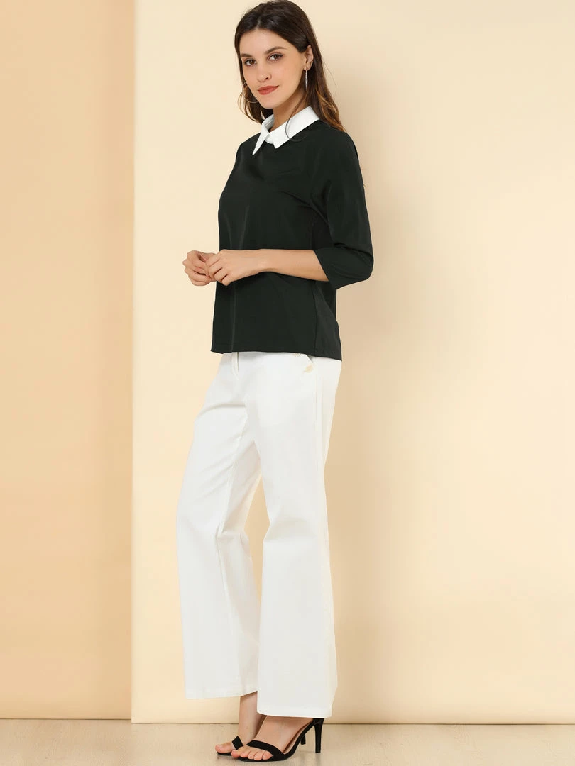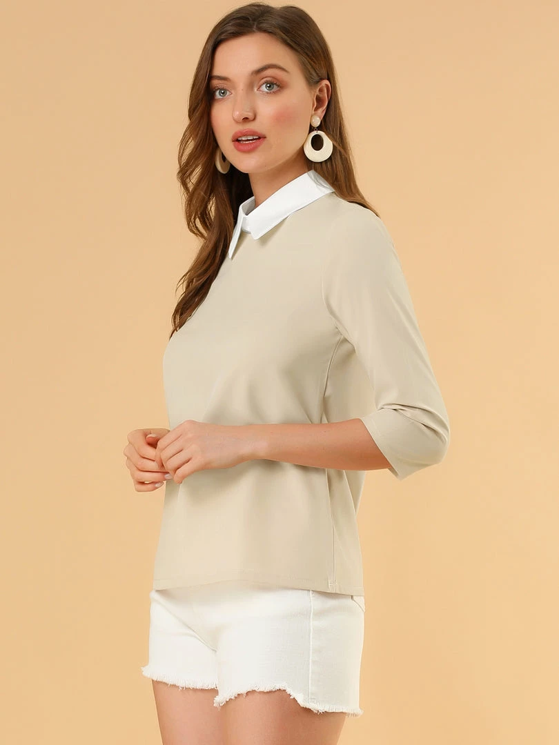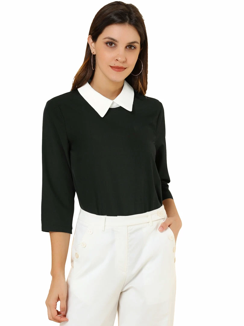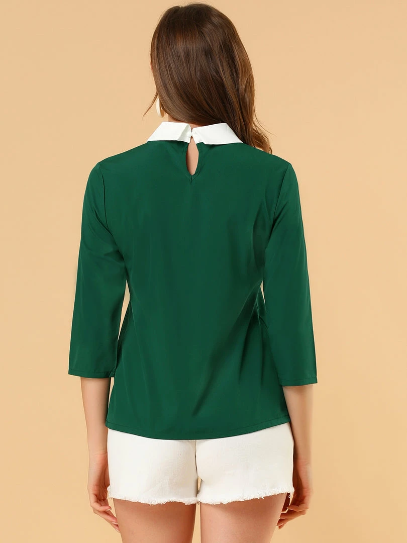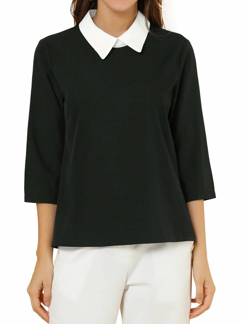 Allegra K Women 3/4 Sleeves Contrast Collar Blouse Tops