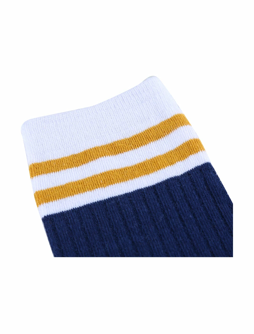 Bar Striped Pattern, Color Blocks, Stretchy, Calf High, Soft, Cotton, Socks