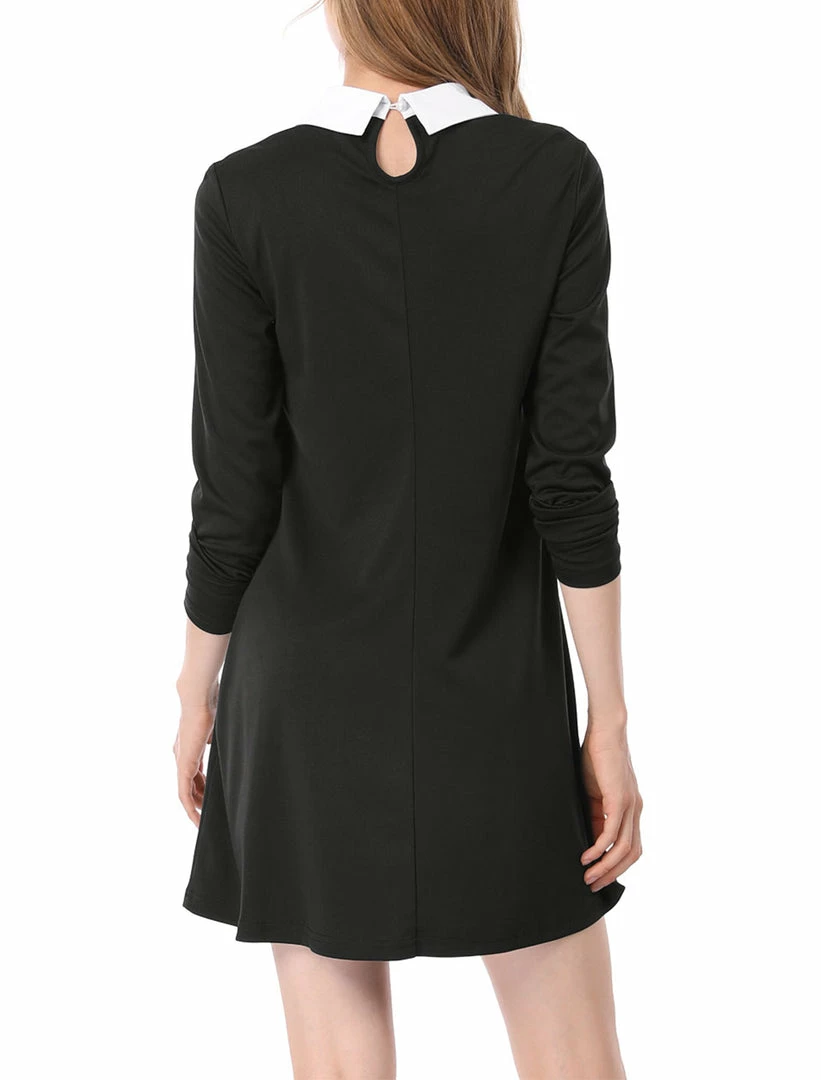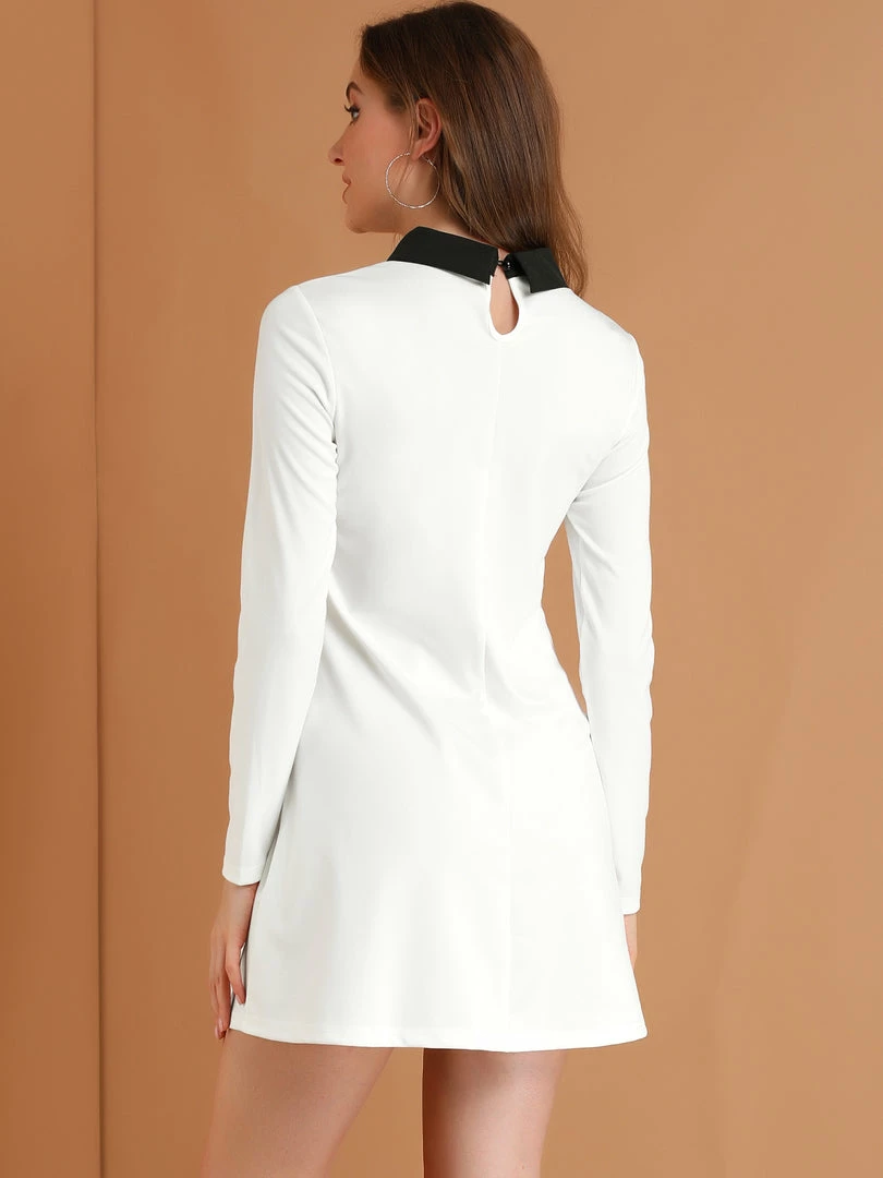 Allegra K Women Contrast Collar Flare Hem Above Knee Dress