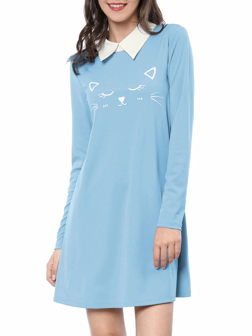 - On the prowl for the perfect off-duty dress? Look no further than this above knee dress adorned with a cute cat face graphic.