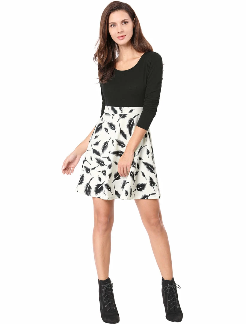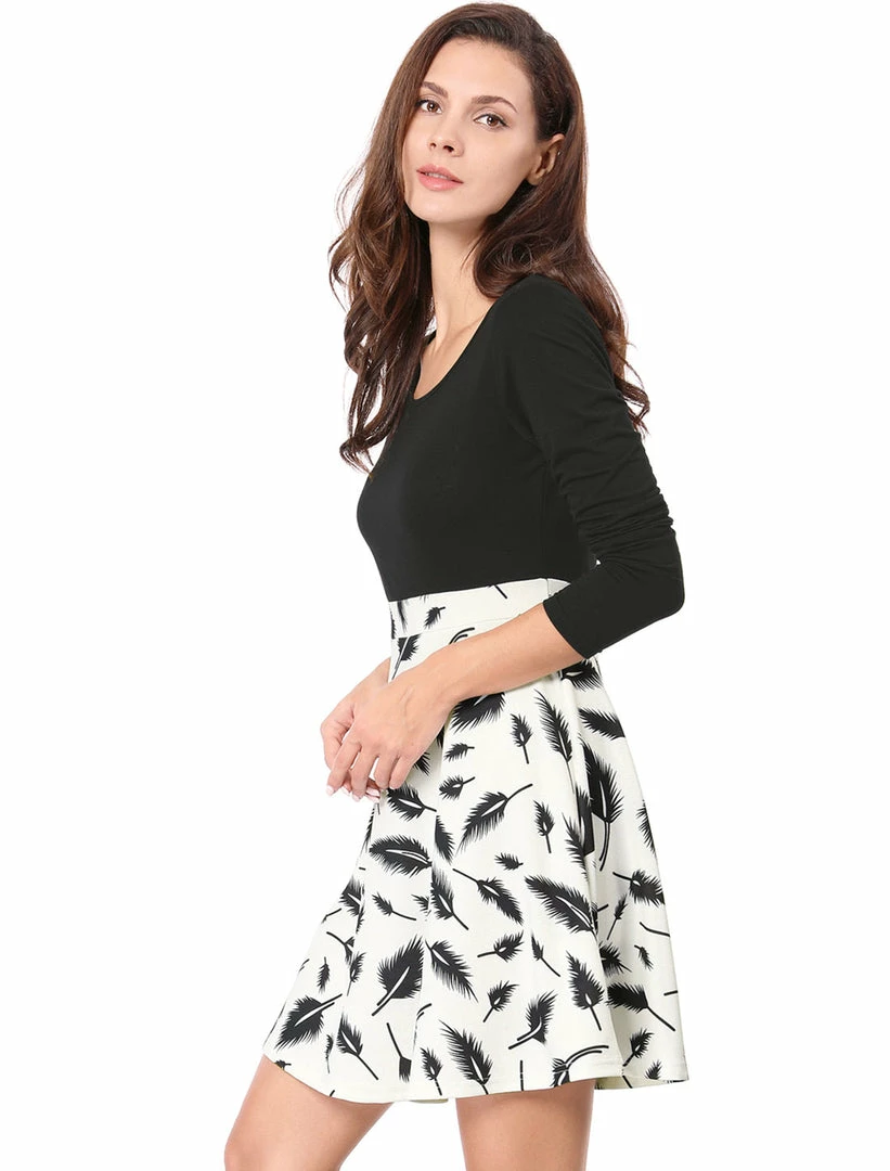 • Get a trendy feather prints in this a-line dress for your autumn.