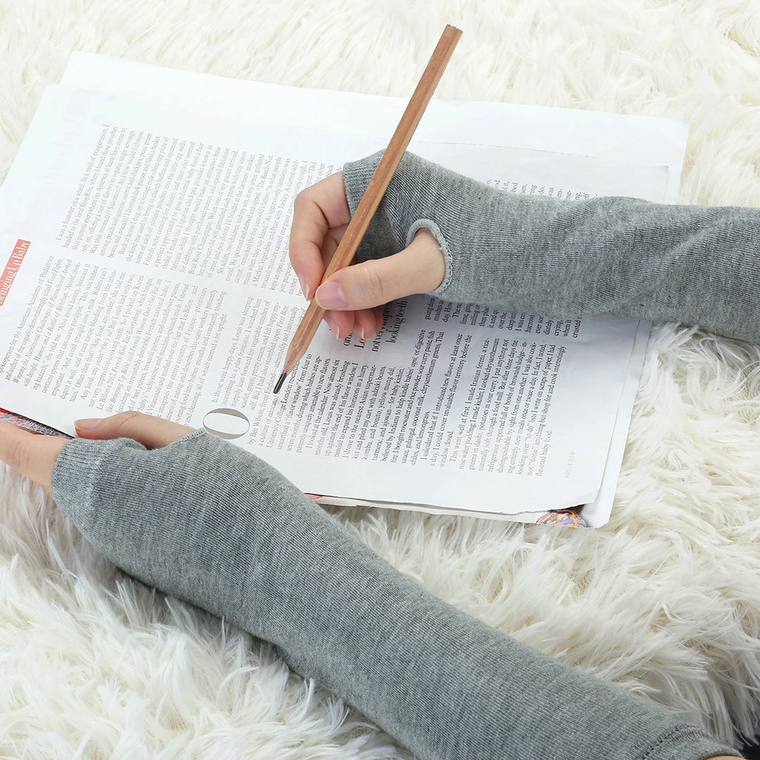 - The arm warmers are solid color pattern and striped pattern, elbow length, elastic and fingerless design, acrylic knitted arm warmers.