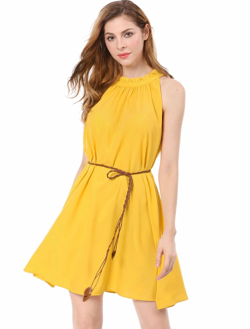 • Featuring fabulous ruffle details around the neckline and belted for extra support and a fully flattering fit, this sleeveless dress is destined for your wardrobe! Perfect for any casual occasion, you will love the way you look and feel in this standout style.