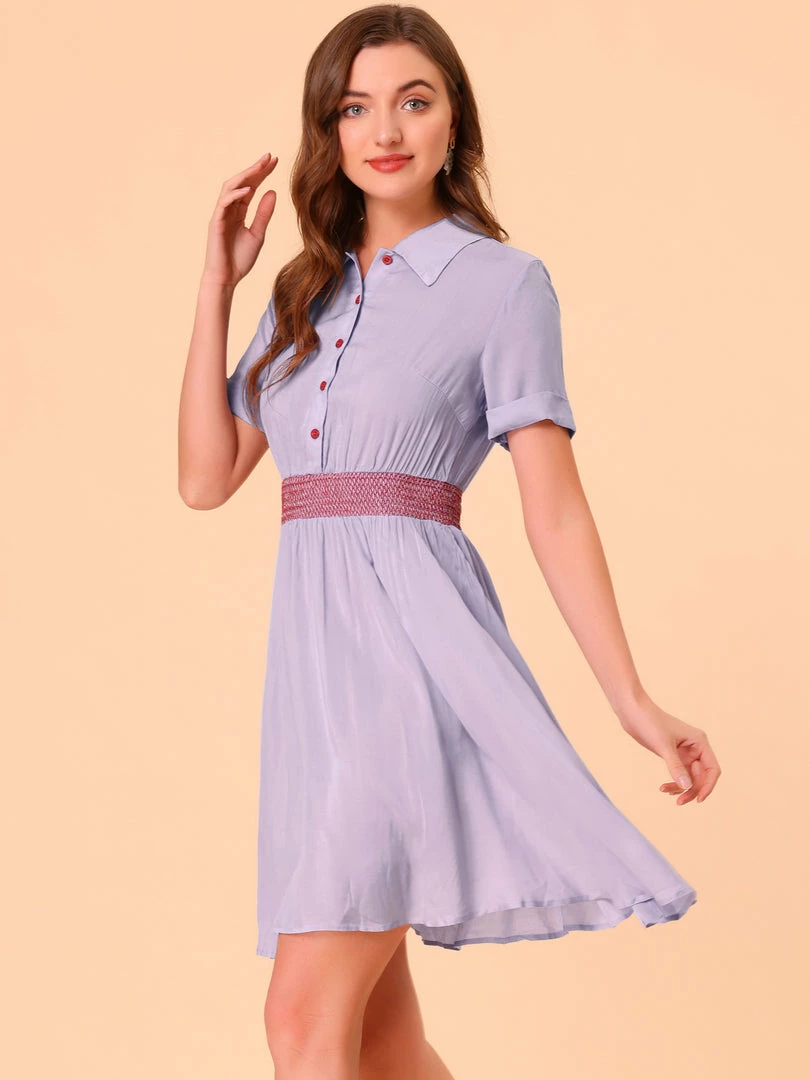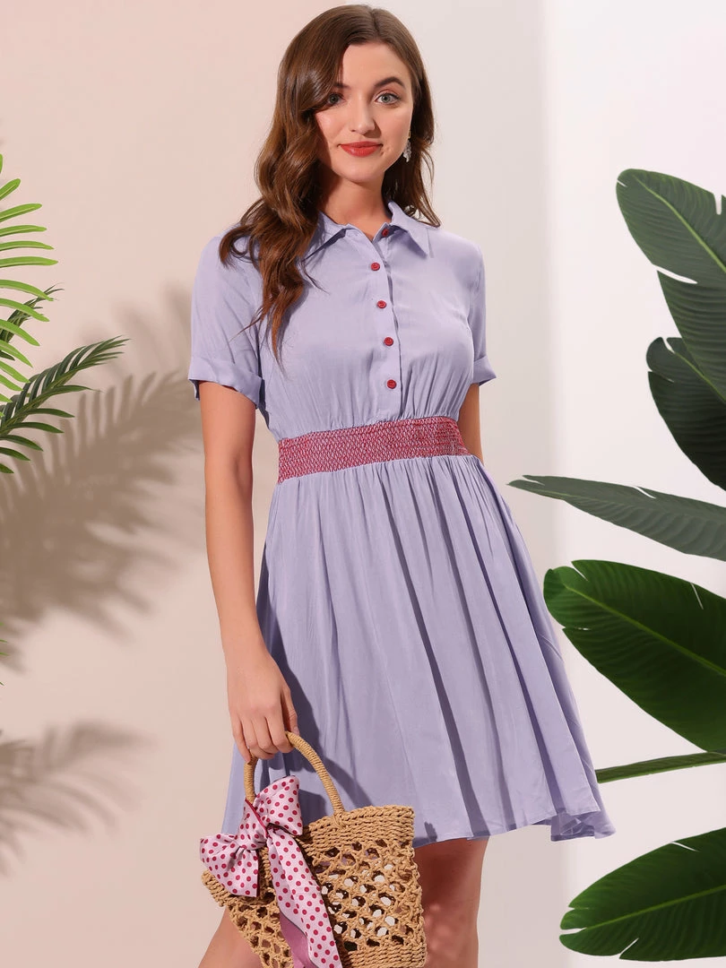 Allegra K Women’s A-line Button Smocked Color Block Summer Dress