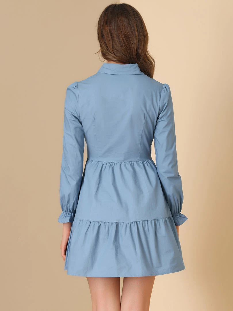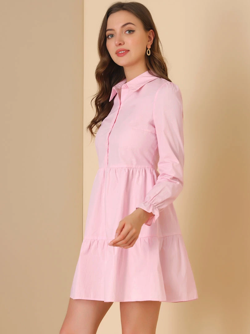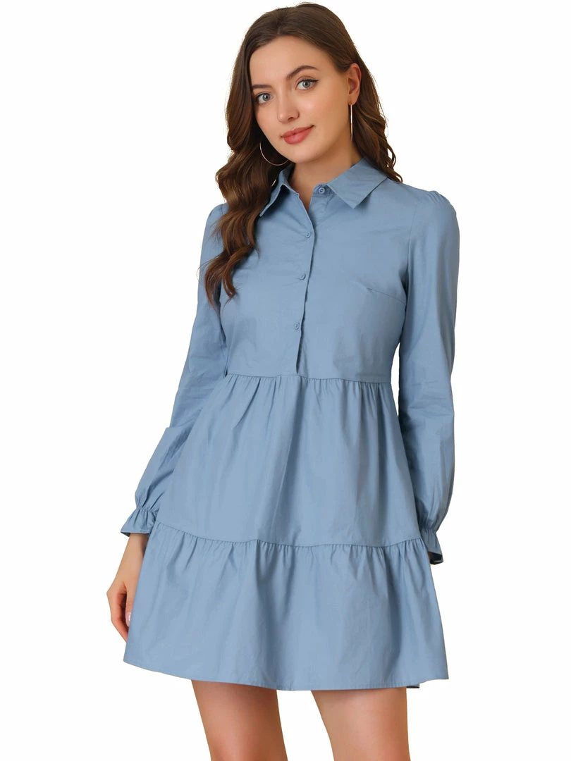Allegra K Women’s Babydoll Shirt Dress Cotton Button Front Dress