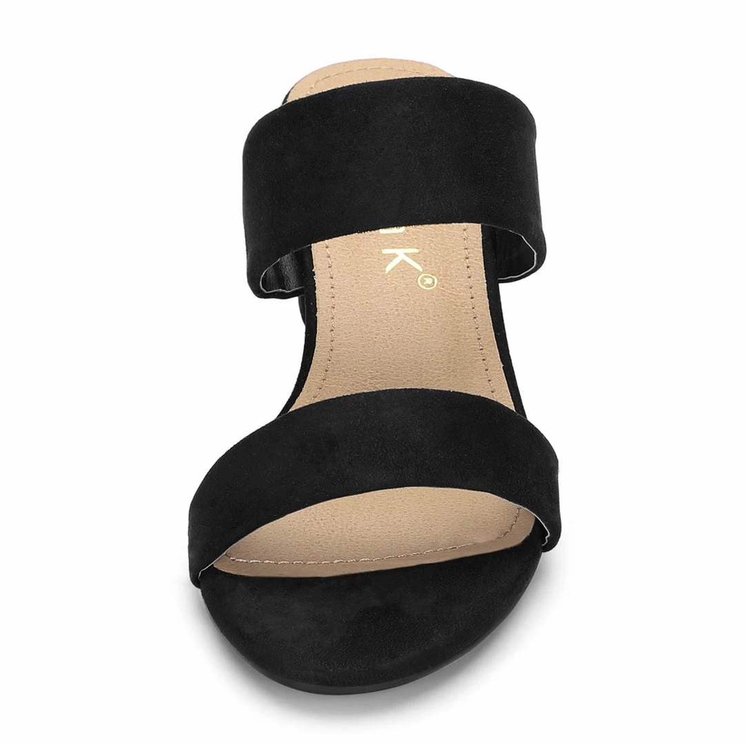 An essential summer slide sandal features double simple straps, a mid-block heel and work-to-weekend-to-wherever versatility.