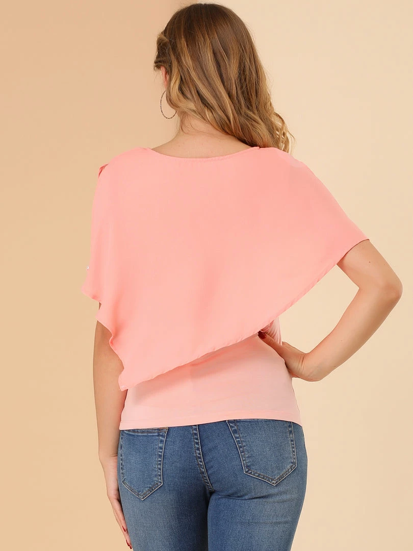 Allegra K Women’s Blouse Chiffon Flowy Loose Overlay Soft Poncho Top