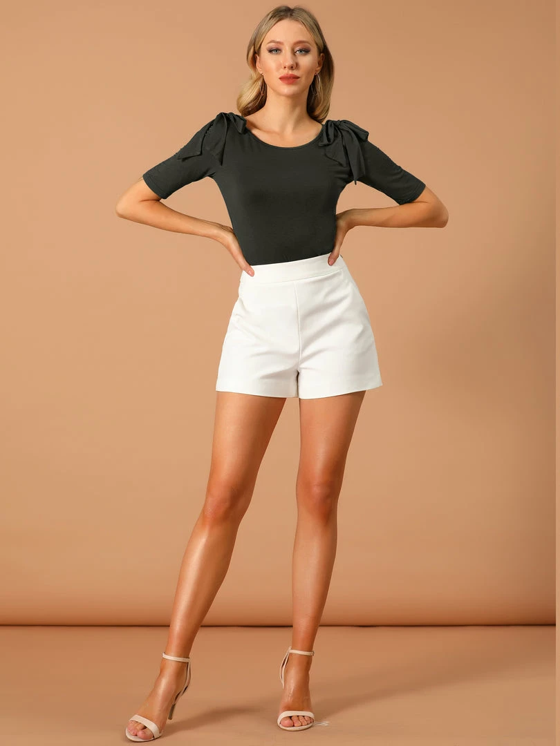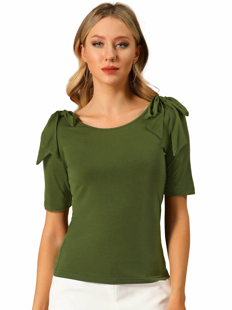 • Upgrade your wardrobe staples with the Knit top from Allegra K. Comfy stretch knit shapes this on-trend top that has a rounded neckline and fitted elbow sleeves.