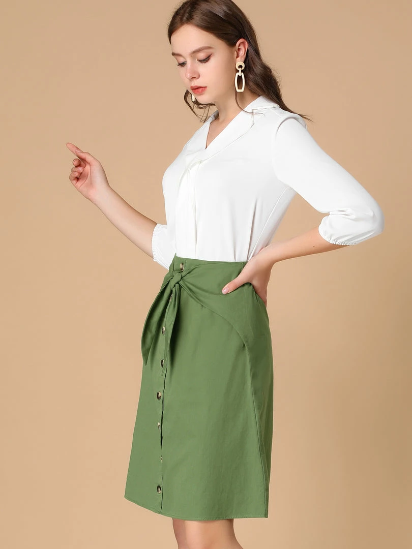 Allegra K Women’s Bow Tie Cotton Button Front Flare A-line Skirt