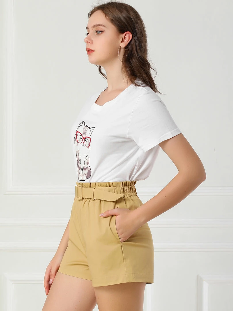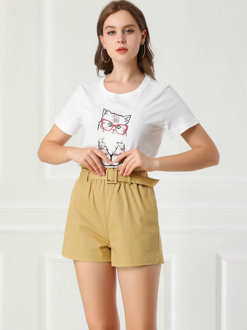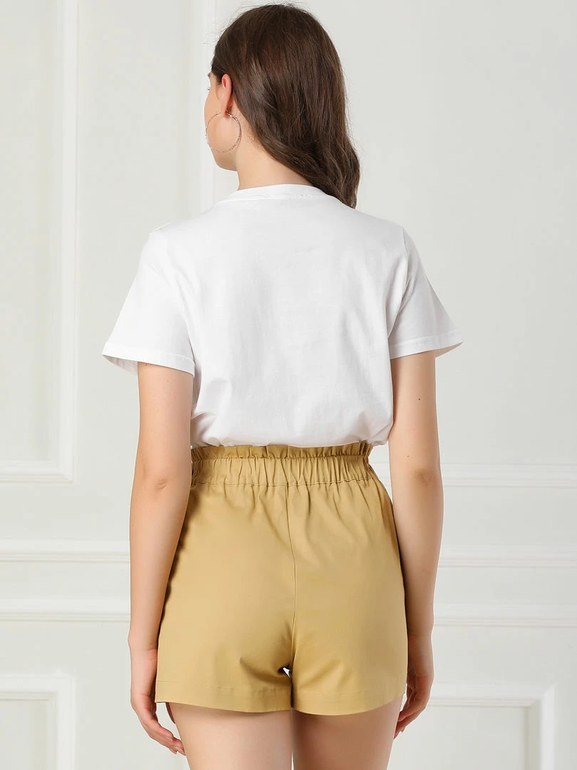 Allegra K Women’s Bow Tie High Waist Casual Paper Bag Shorts