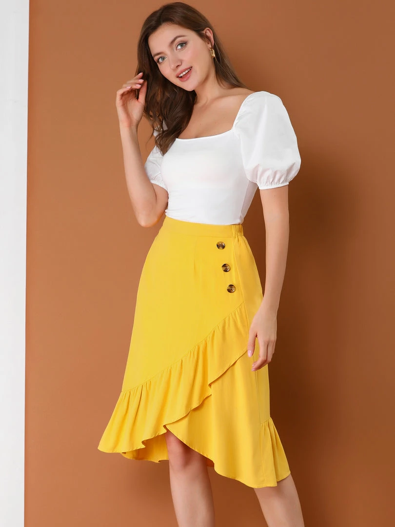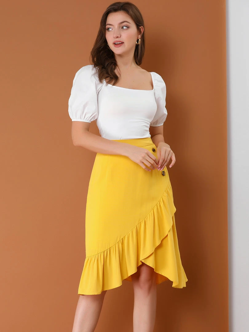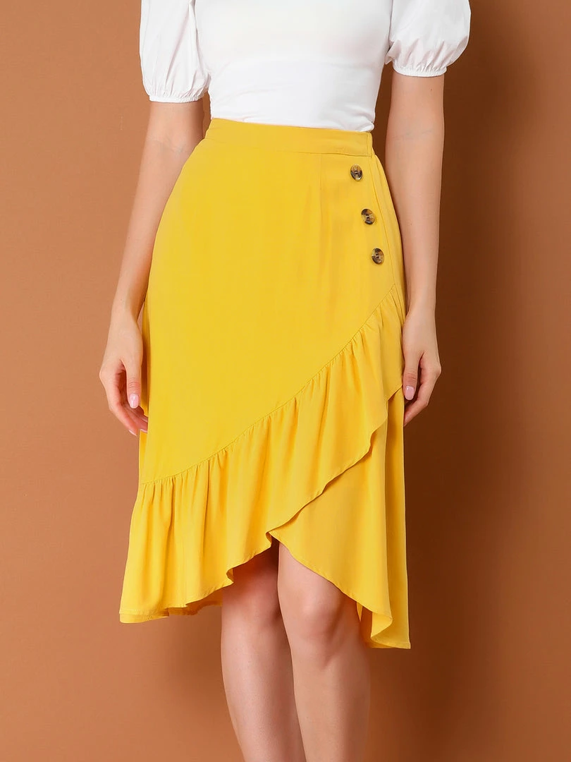 • Ruffle Hem, High Elastic Waist, Solid Color, Wrap Skirt