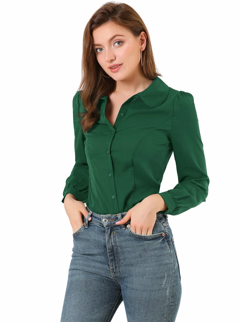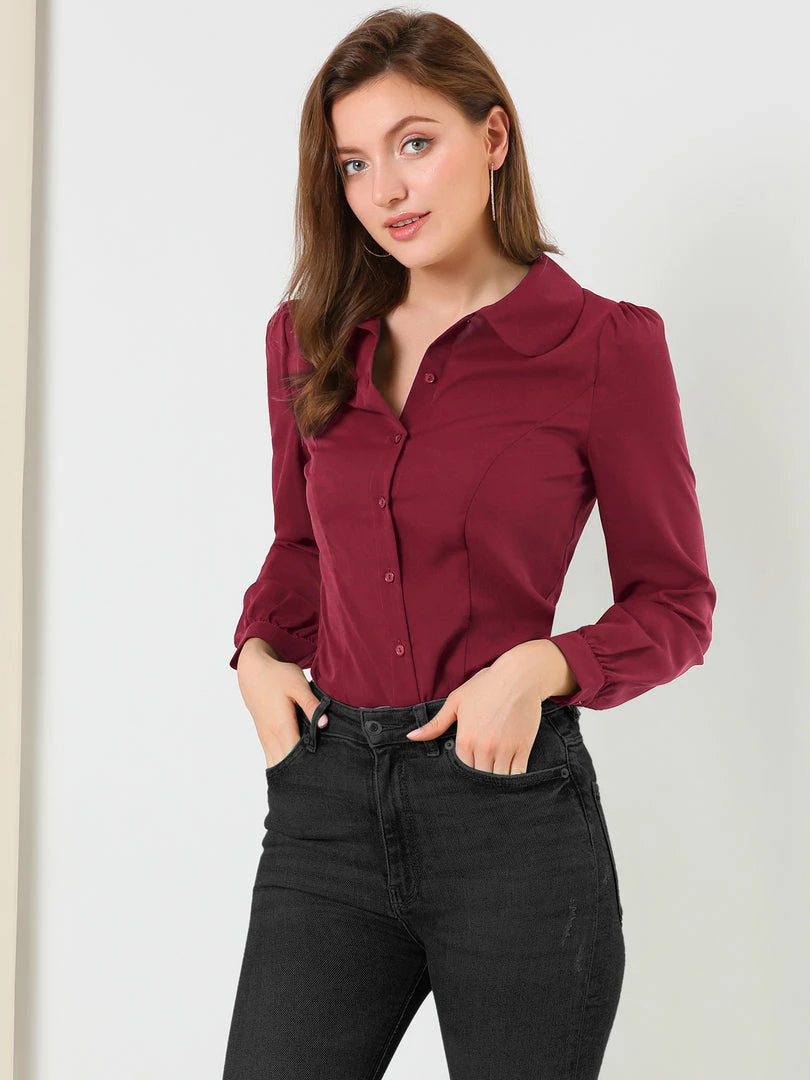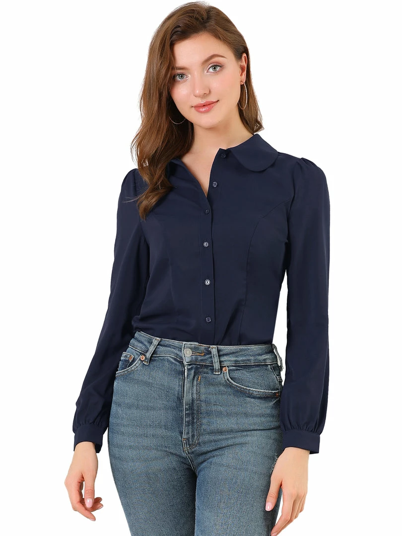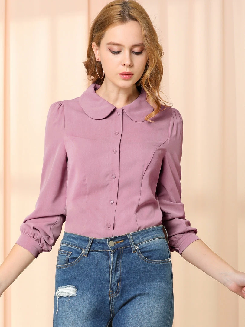 - The stylish peter pan collar and bow-tie neck design are different from the classic shirt, adding a unique feminine.