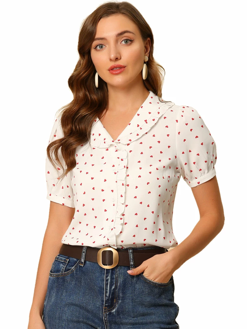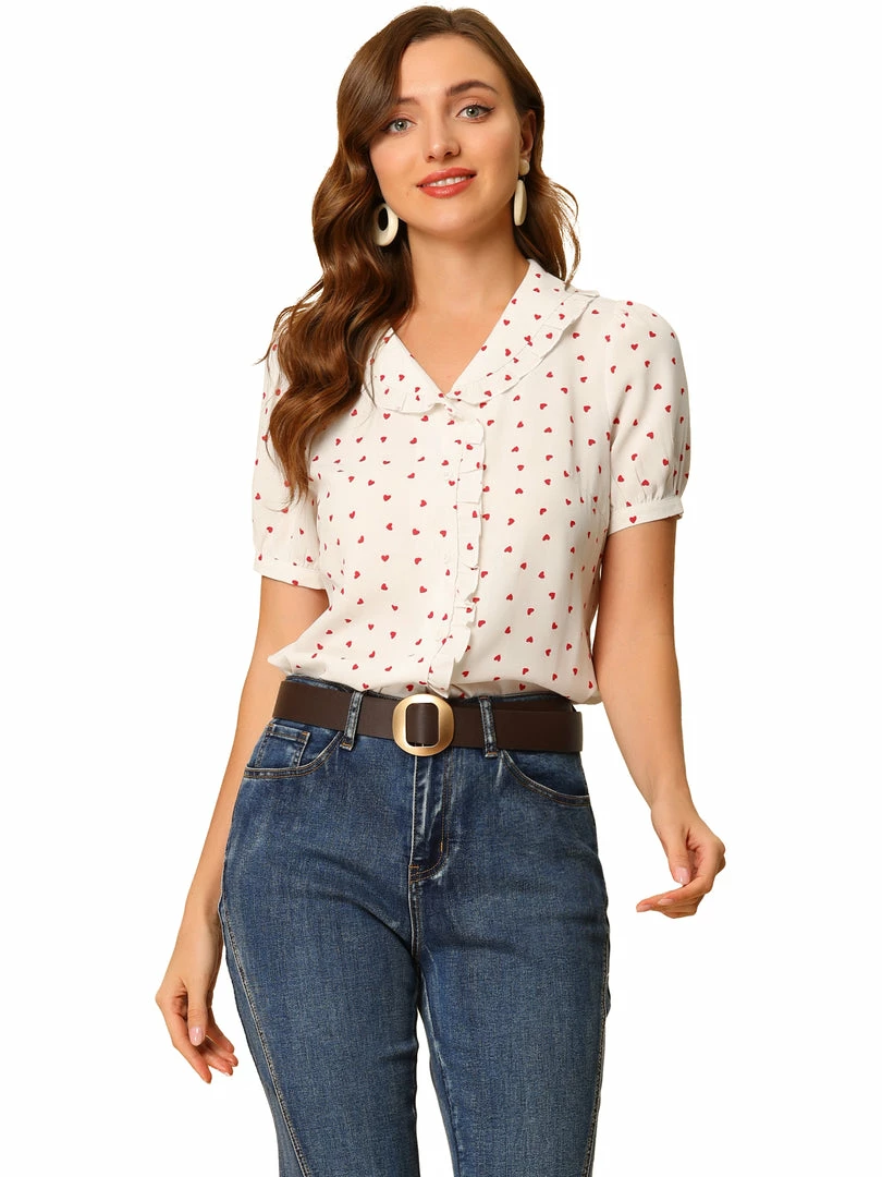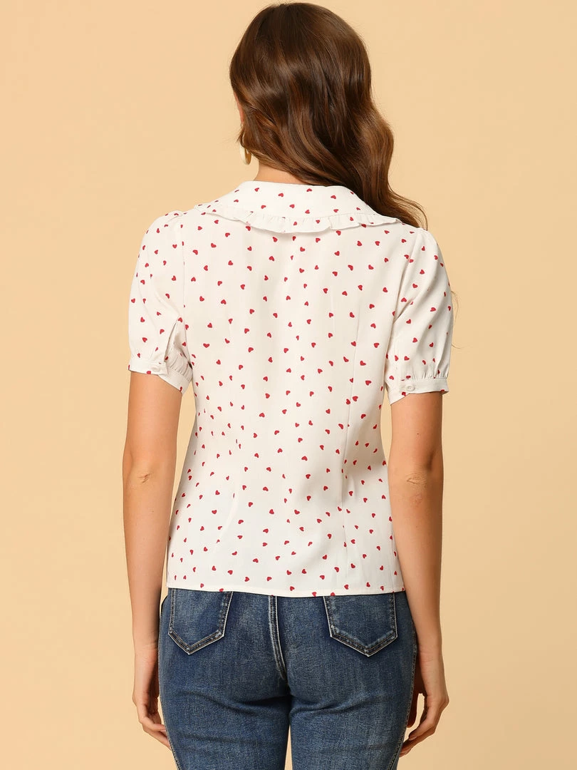 Allegra K Women’s Button Down Shirts Turndown Collar Short Sleeve Valentine’s Day Shirt