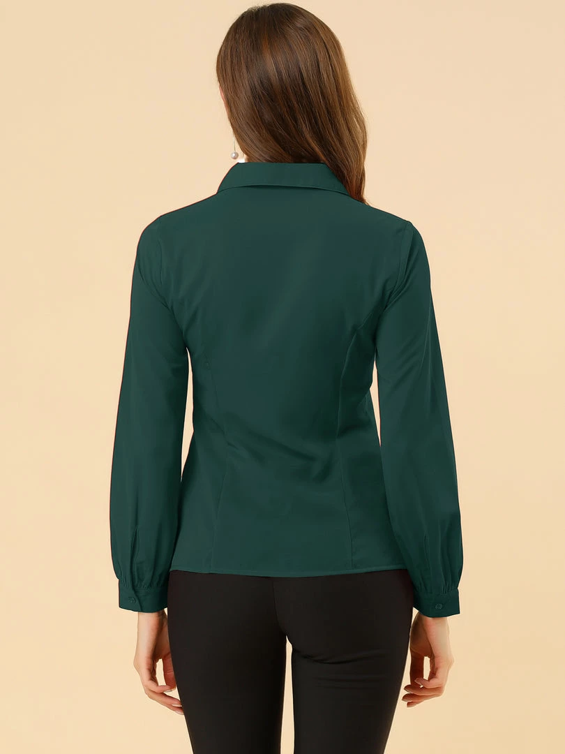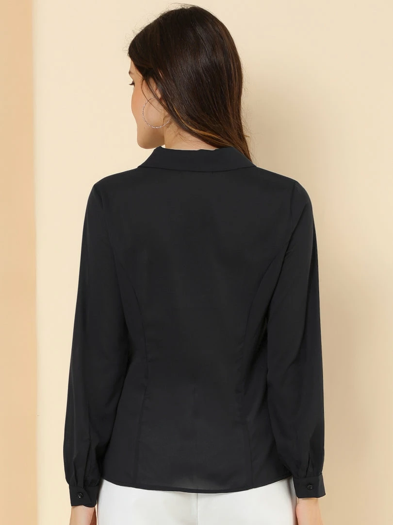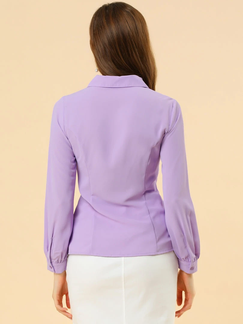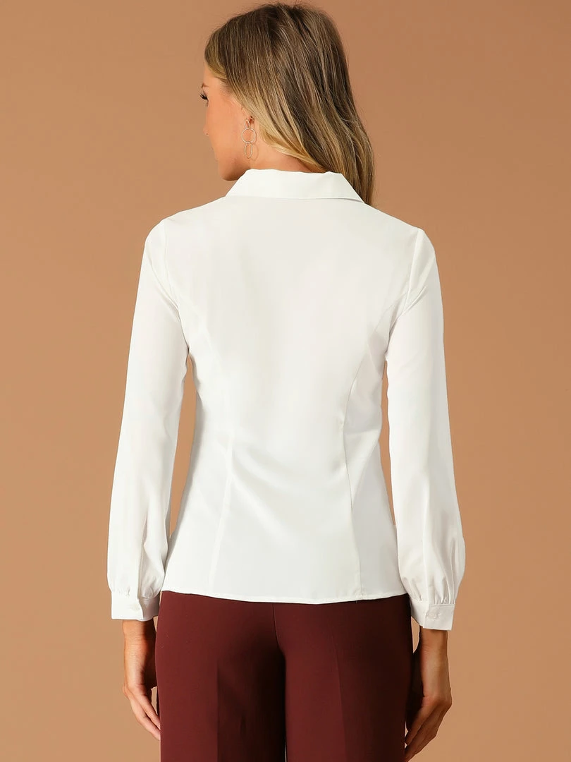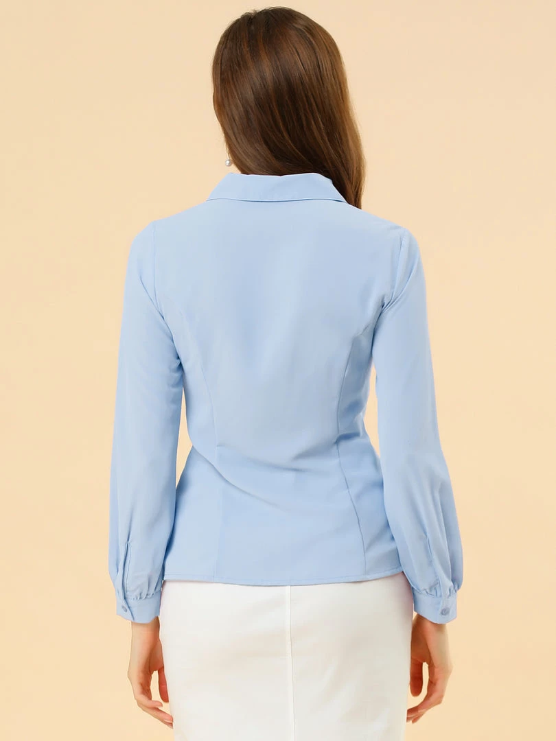 Allegra K Women’s Button Up Shirt Career Peter Pan Collar Long Bishop Sleeve Blouse