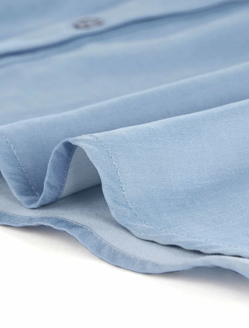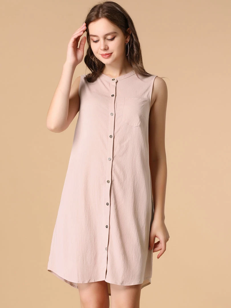 - Simple and delicate, this dress features a breast pocket, button-up, crew neck, and lightweight breathable fabric.