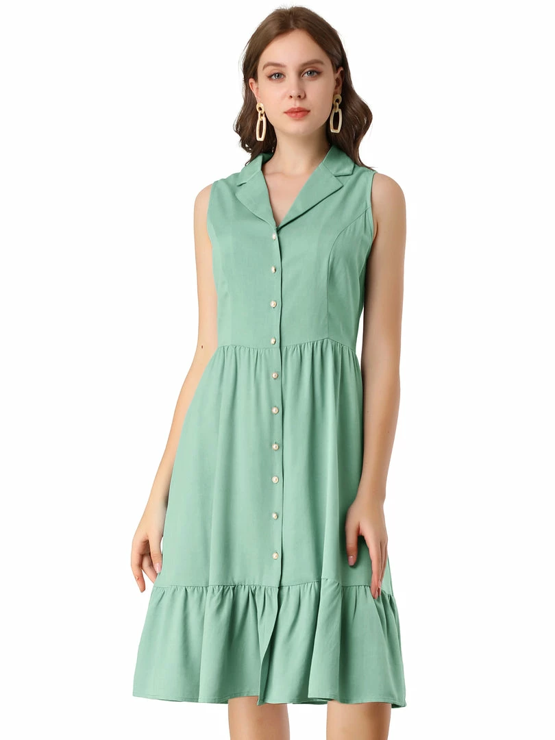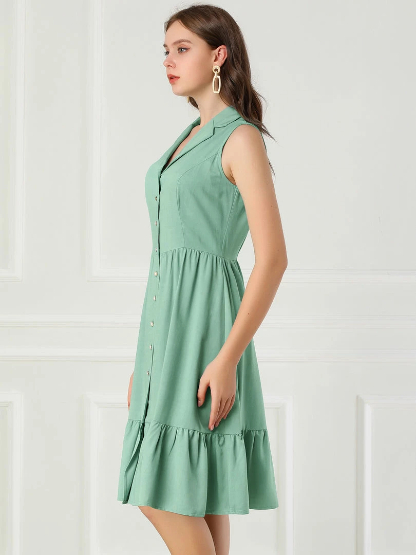 Allegra K Women’s Camp Collar Button Down Ruffle Hem Shirt Dress