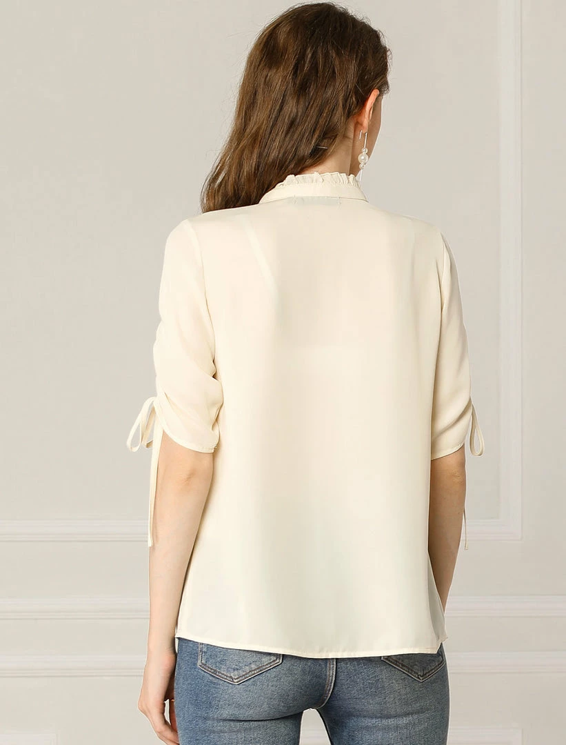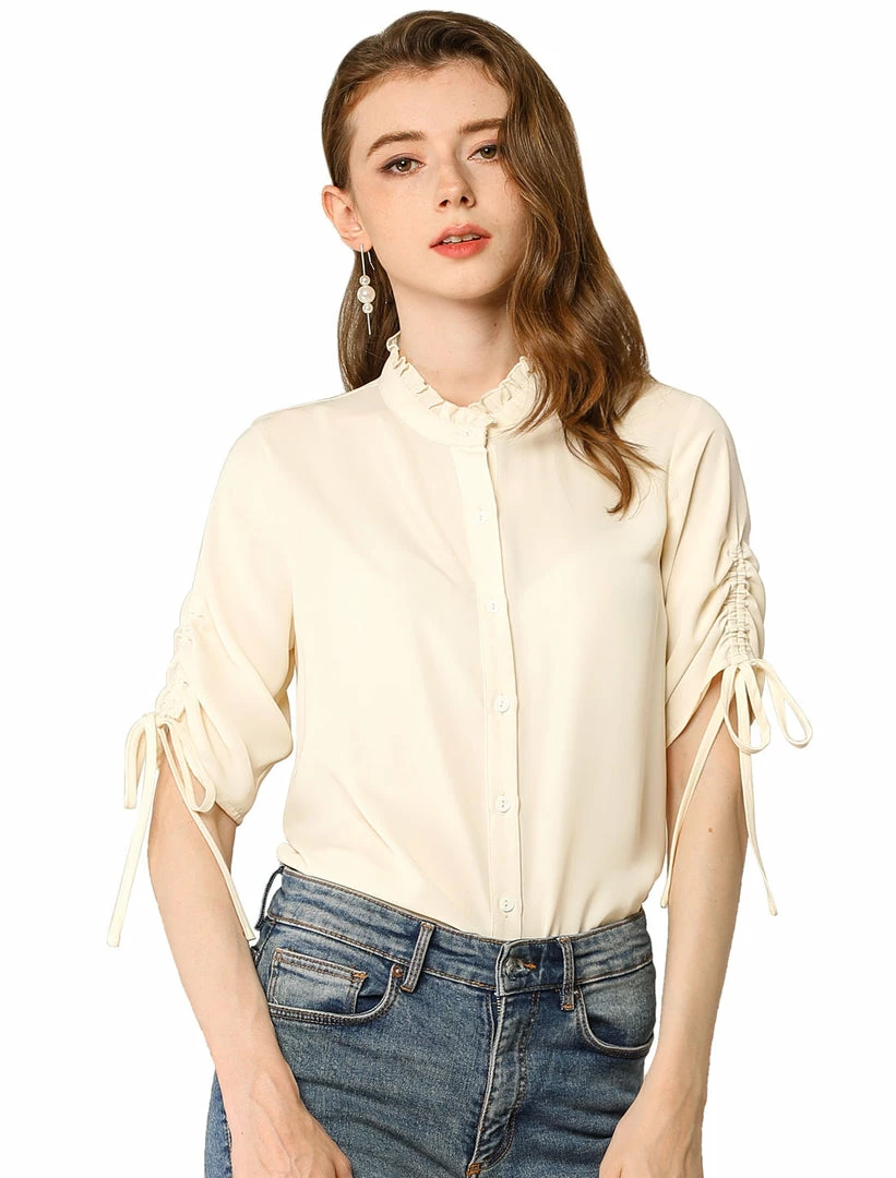 Allegra K Women’s Casual Blouse Ruched Half Sleeve Button Up Shirts