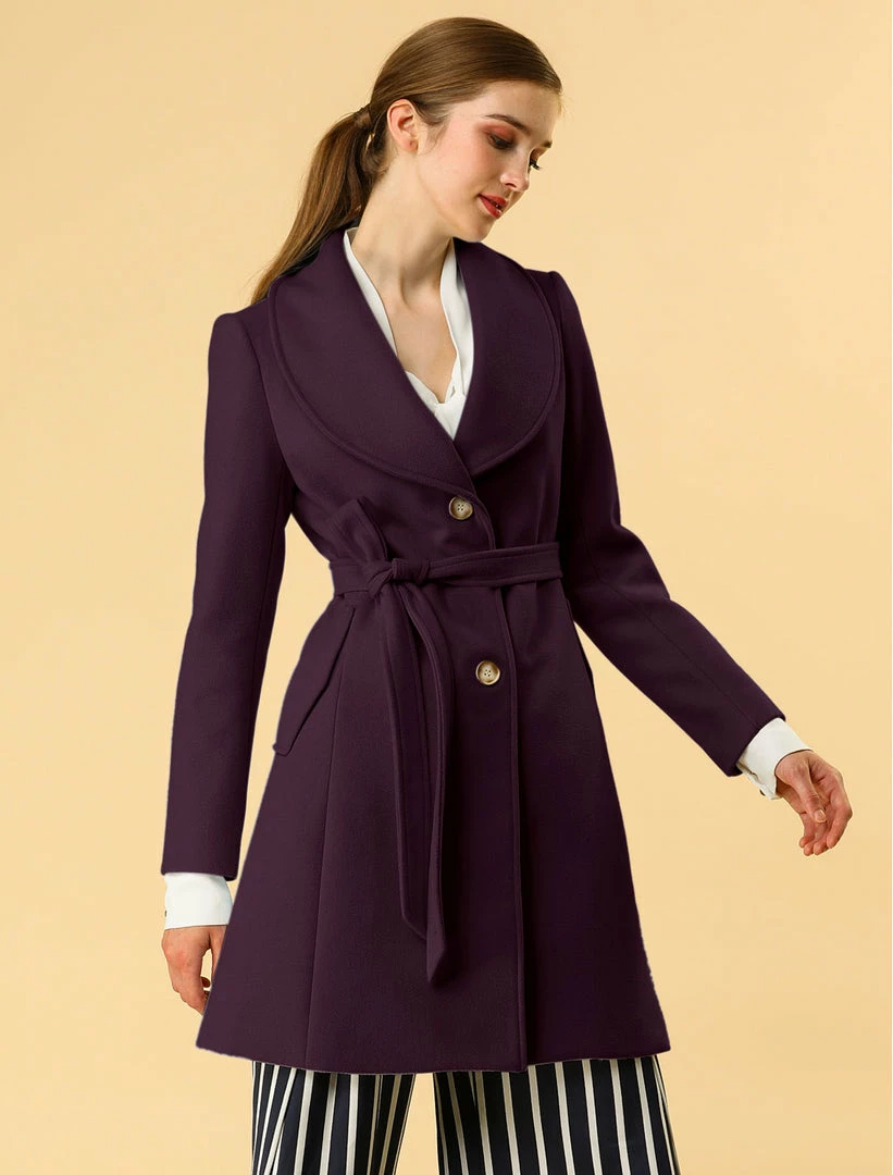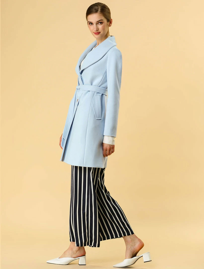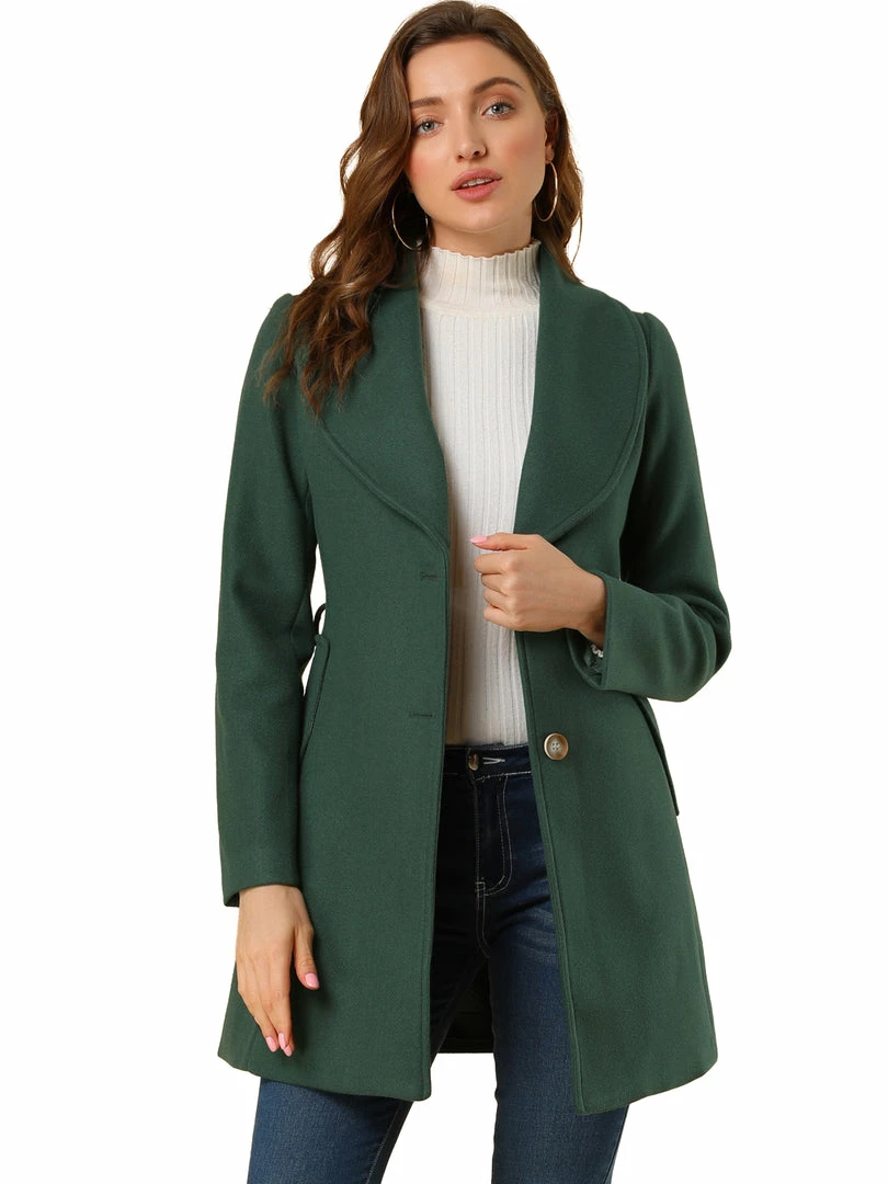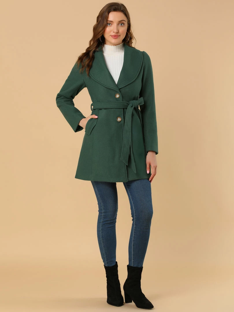 Allegra K Women’s Casual Cute Turn Down Collar Slim Single Breasted Belted Coat