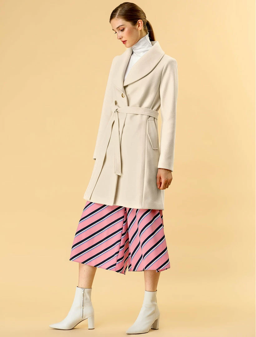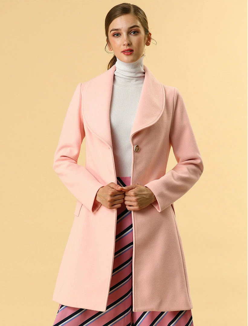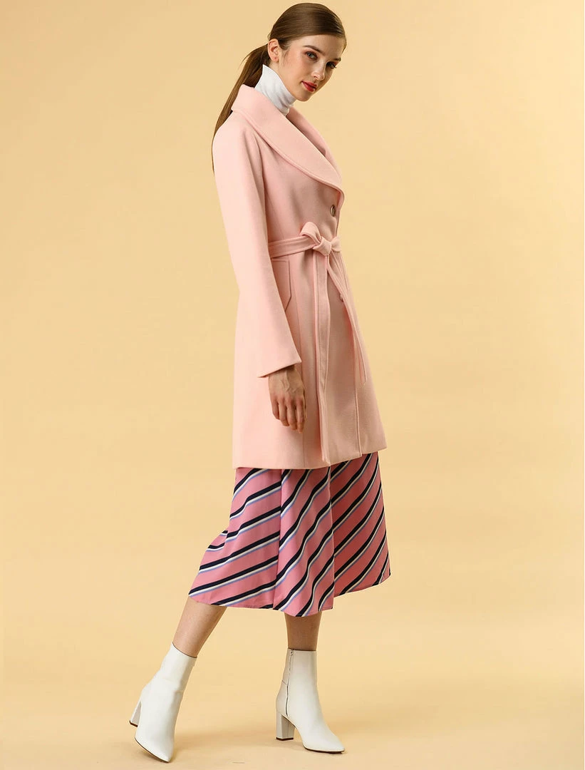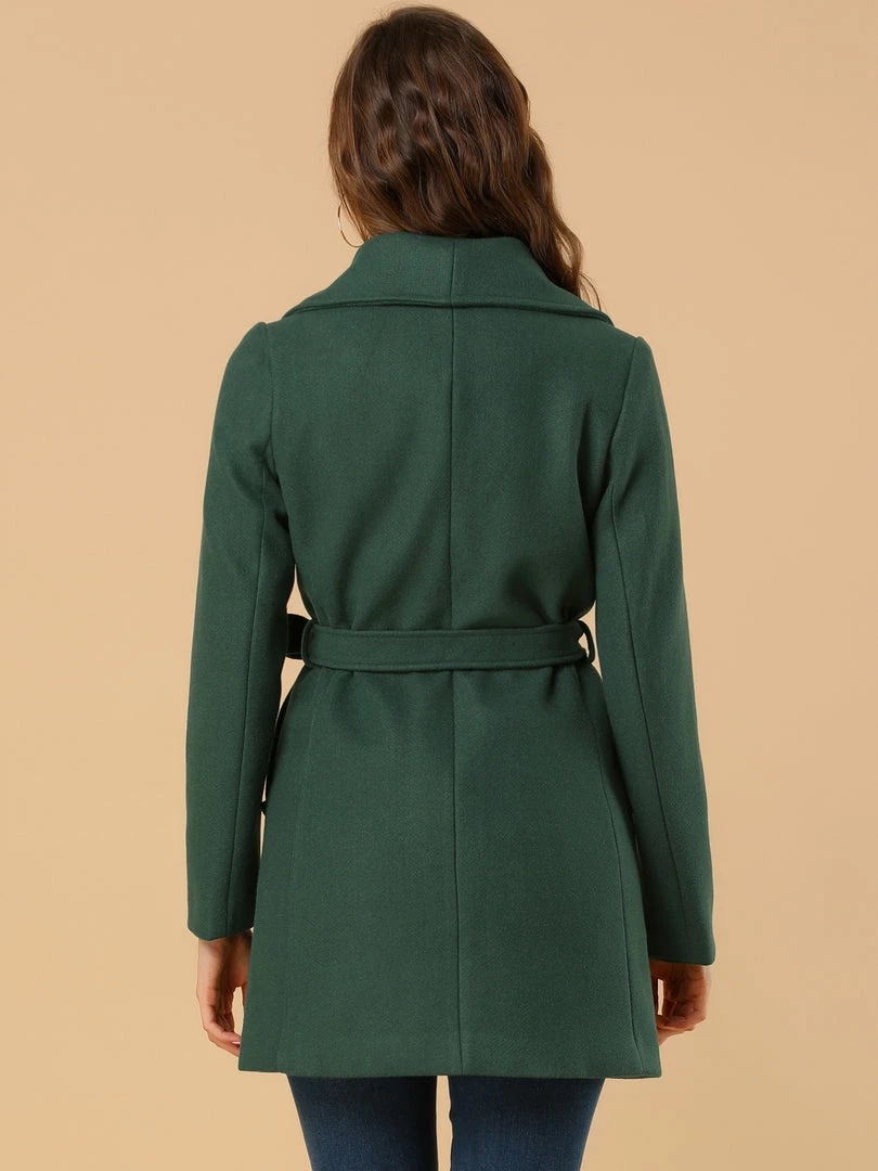 Allegra K Women’s Casual Cute Turn Down Collar Slim Single Breasted Belted Coat