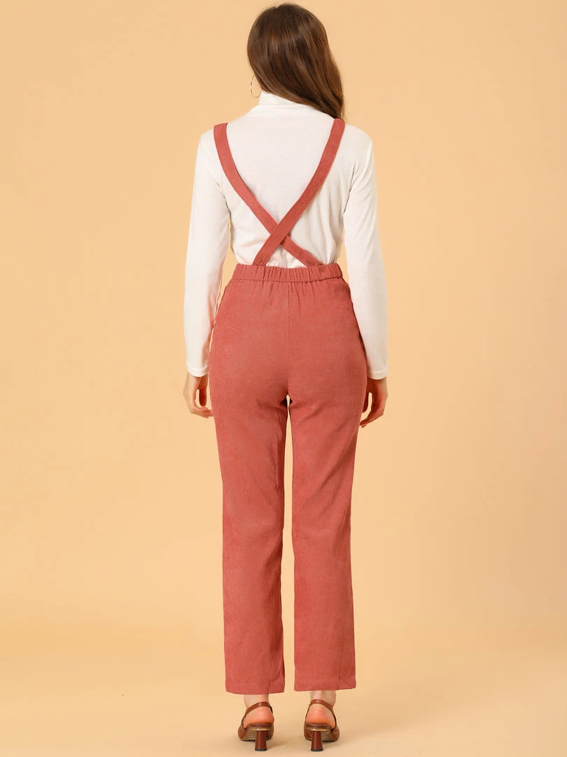 Allegra K Women’s Casual Elastic Back Corduroy Overalls Strap Pants