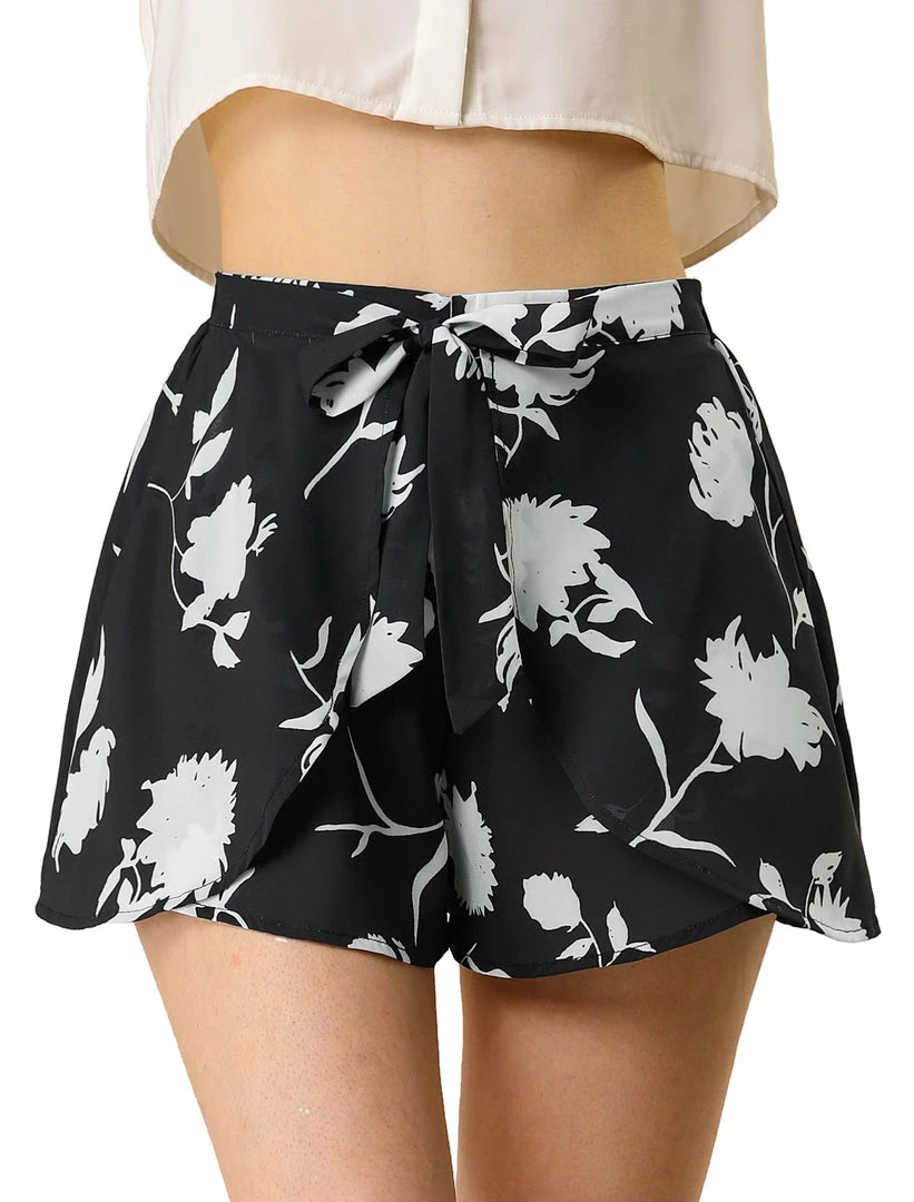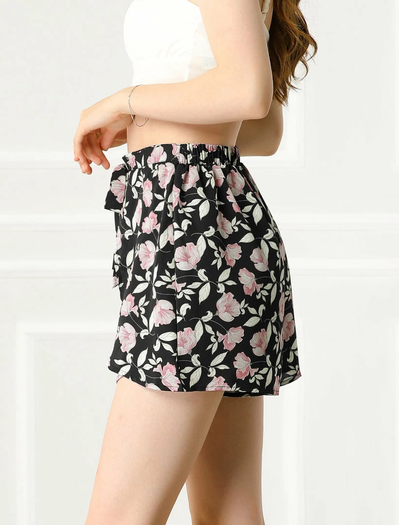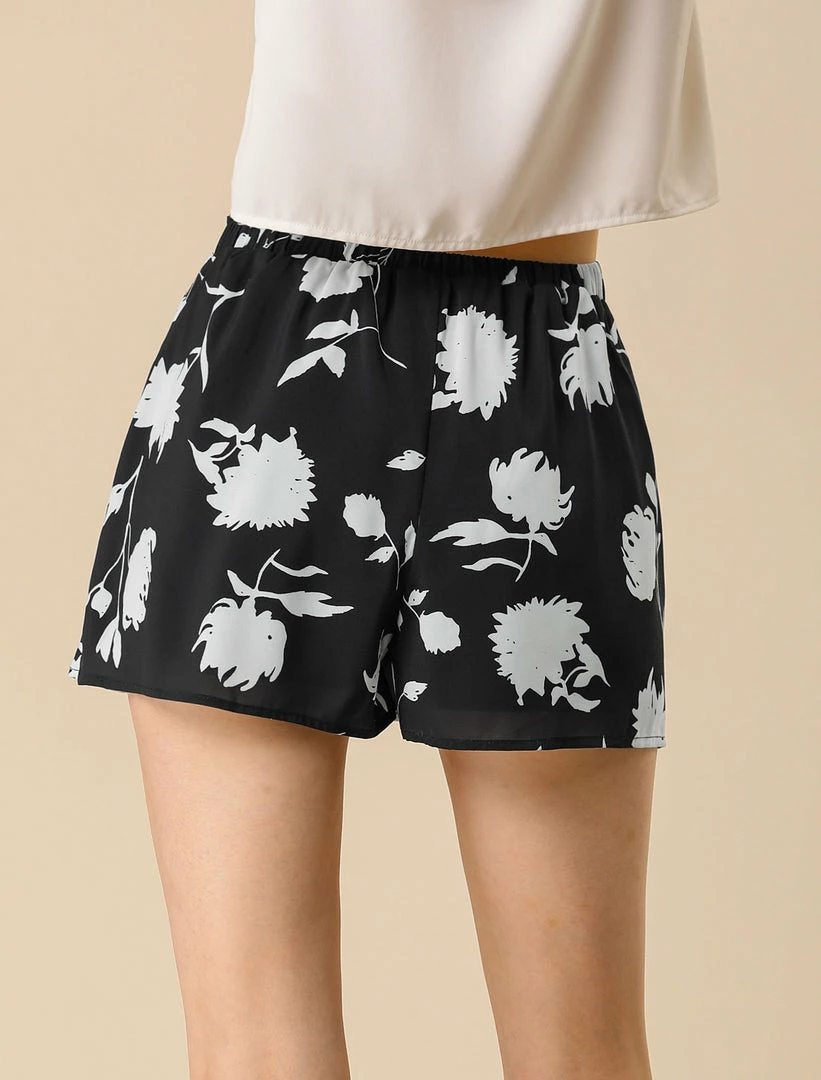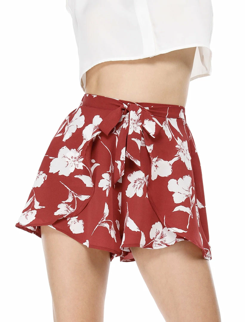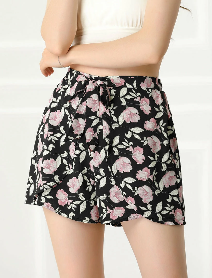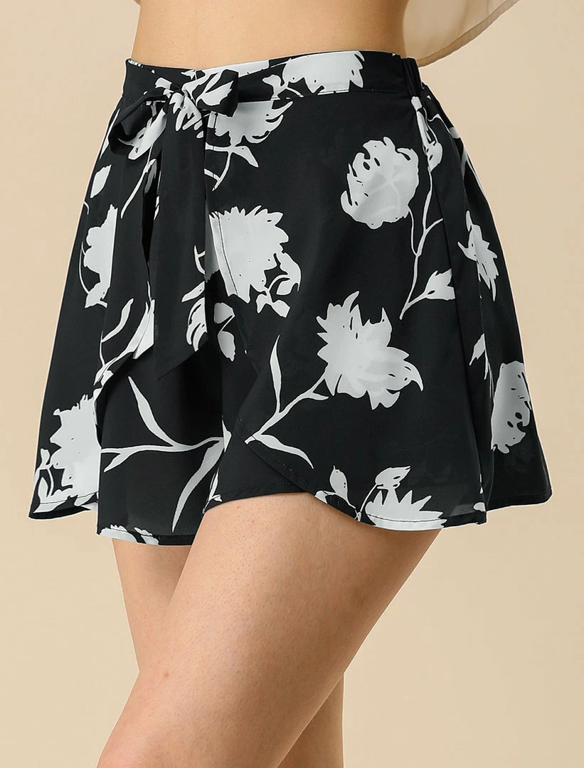 • This floral shorts stays in place with a stretch waistband and self tie strap to ensure comfort.