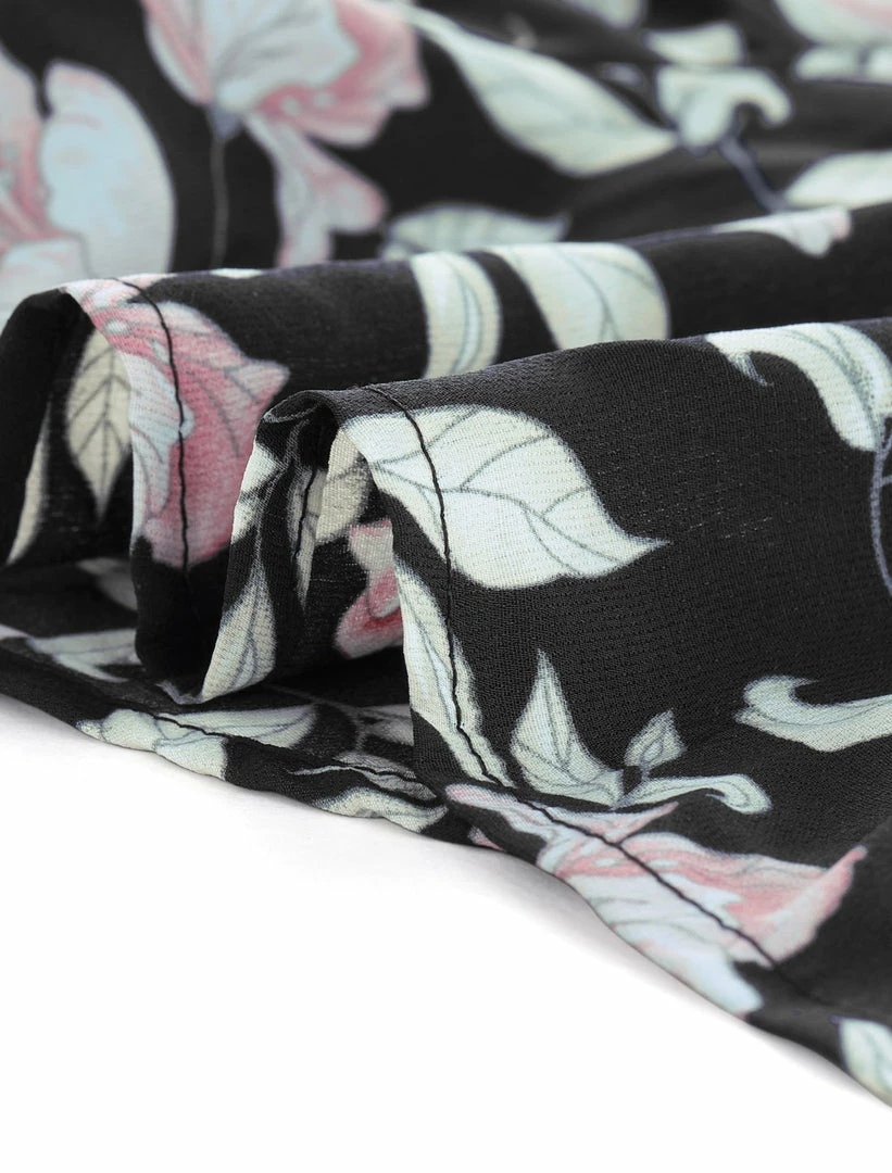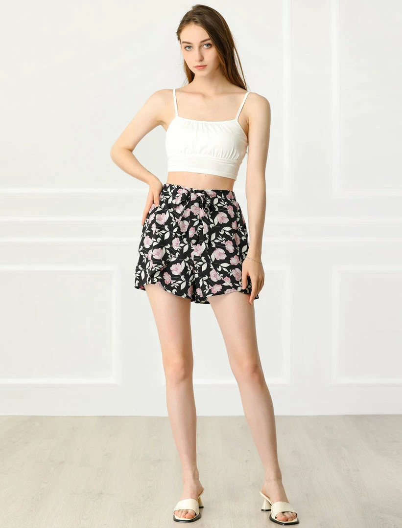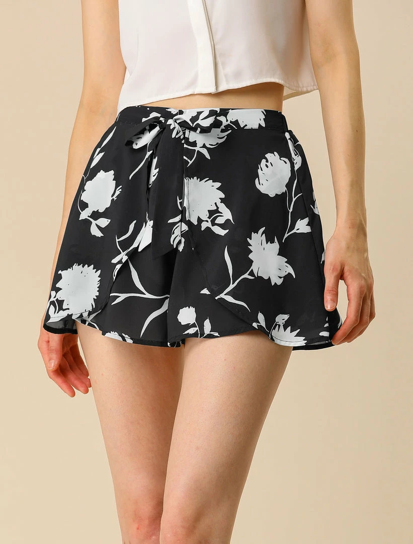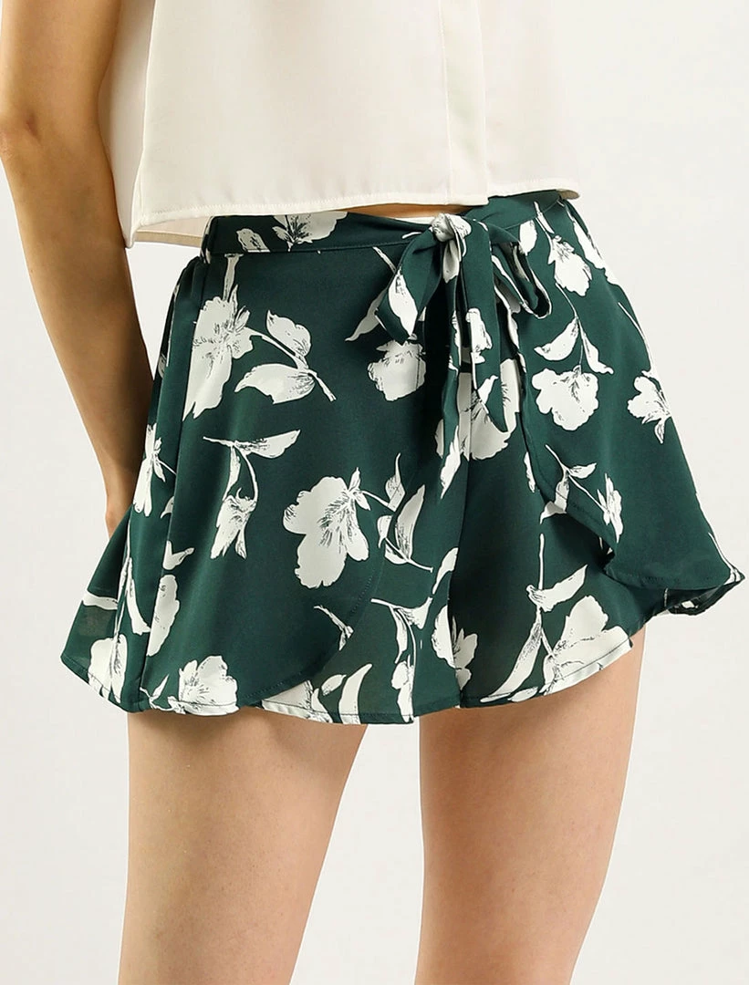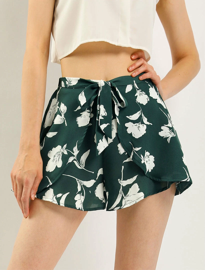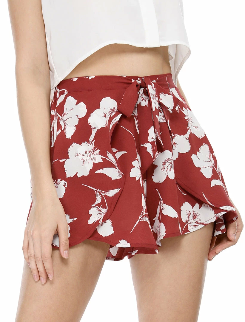 • This floral shorts stays in place with a stretch waistband and self tie strap to ensure comfort.