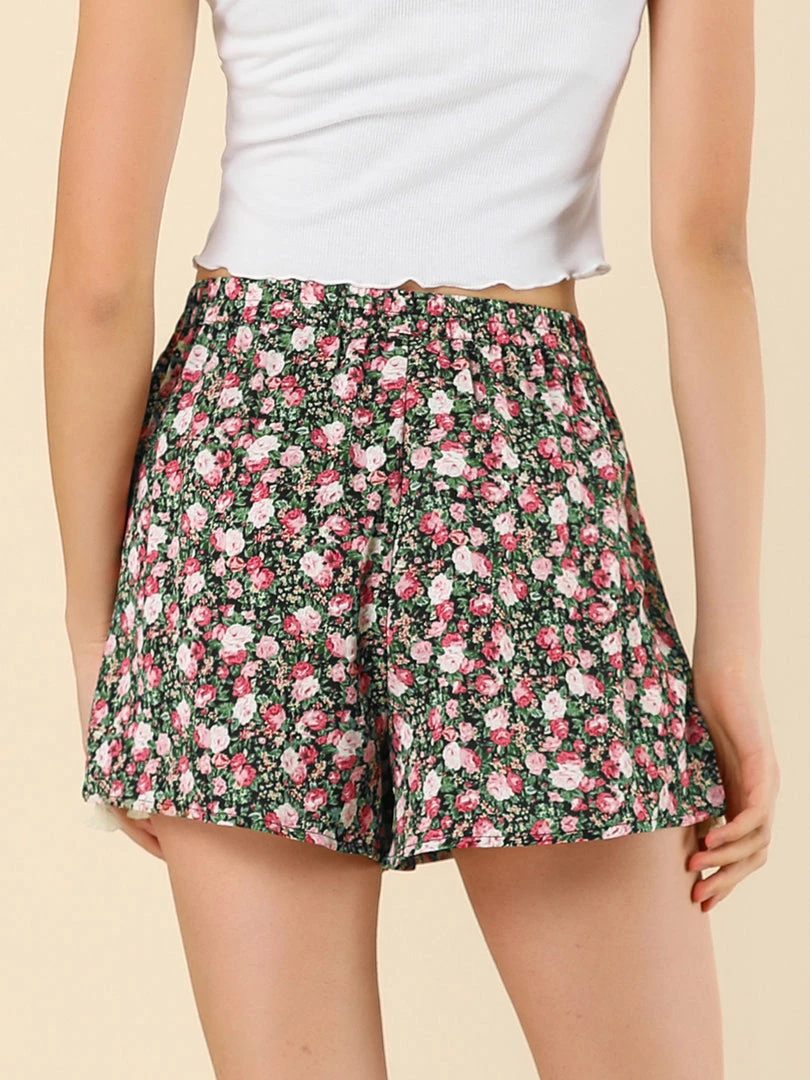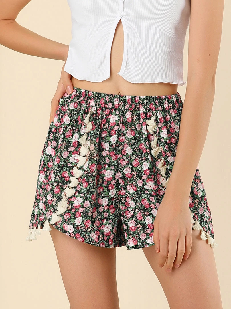 Allegra K Women’s Casual Elastic Waist Tassel Summer Beach Floral Shorts