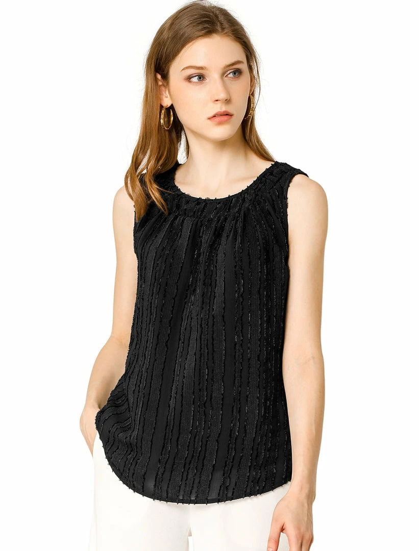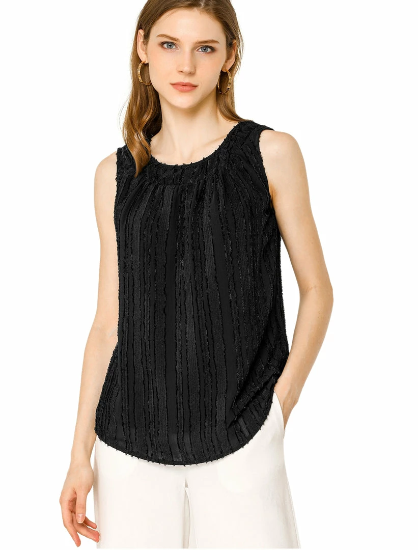Allegra K Women’s Casual Gathering Round Neck Sleeveless Striped Vest Top
