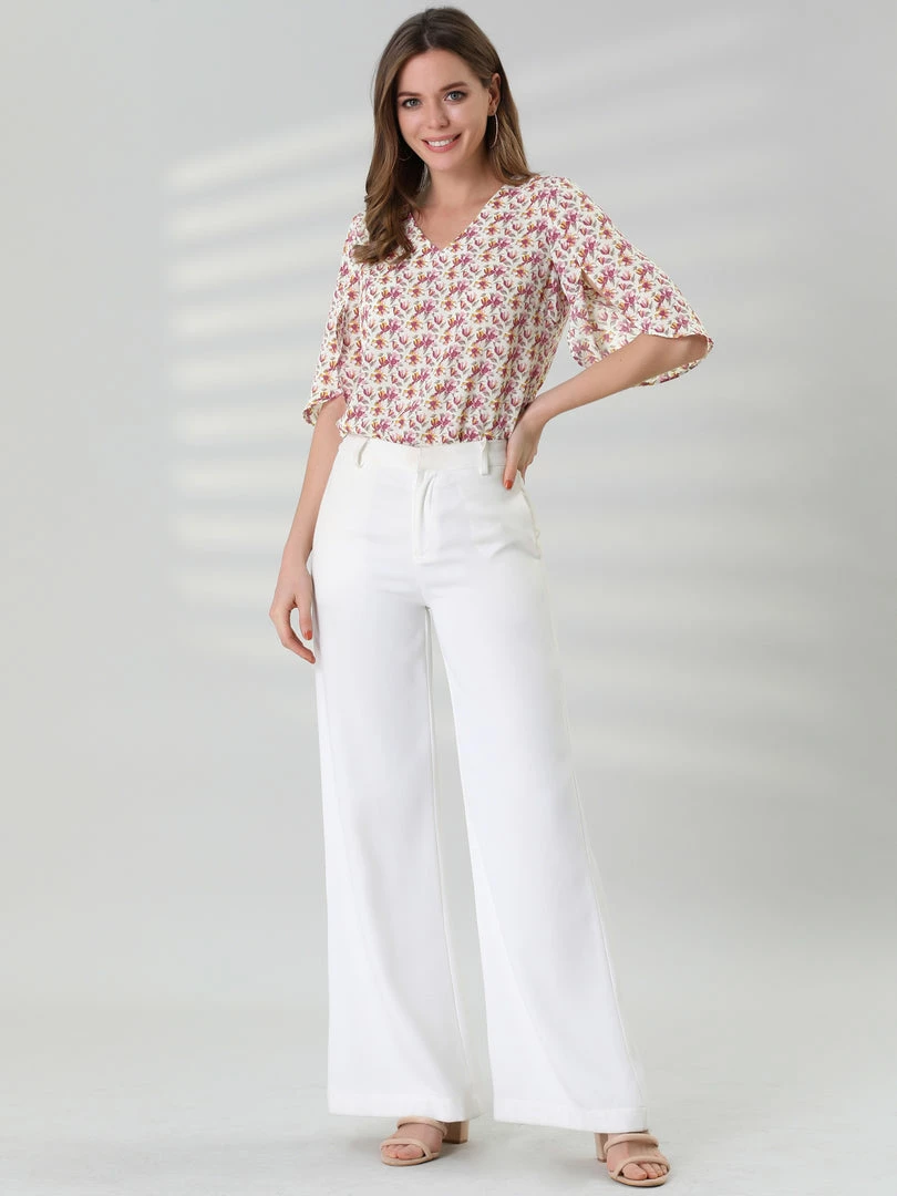 Allegra K Women’s Casual Half Ruffle Sleeve Shirts V Neck Floral Blouse Tops