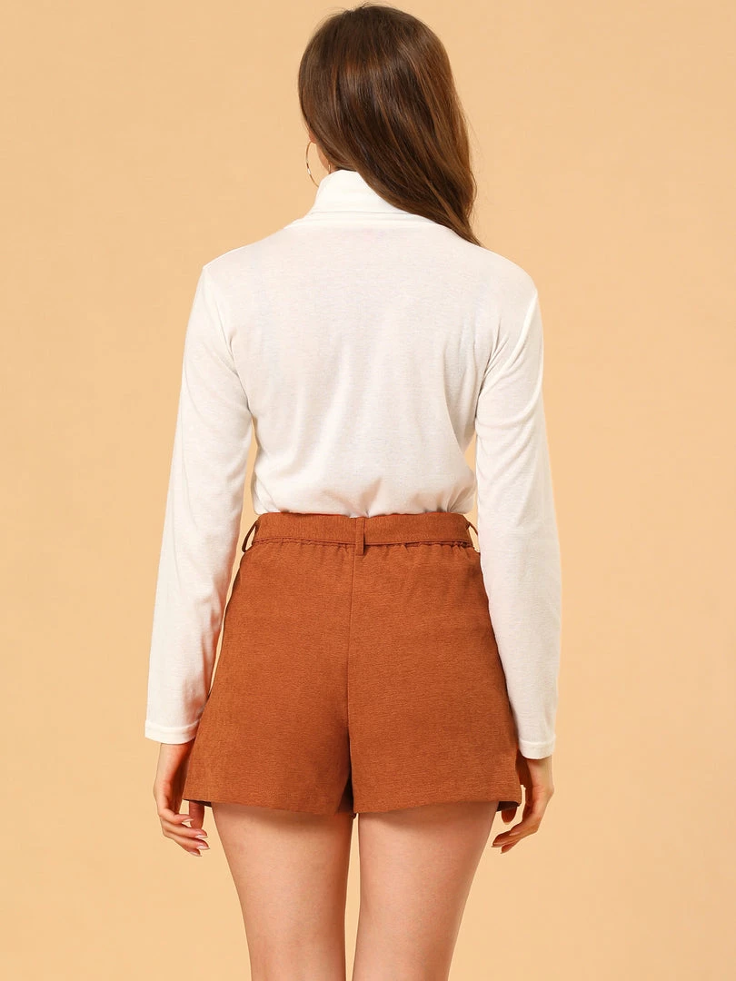 Allegra K Women’s Casual High Waist Corduroy Belted Short