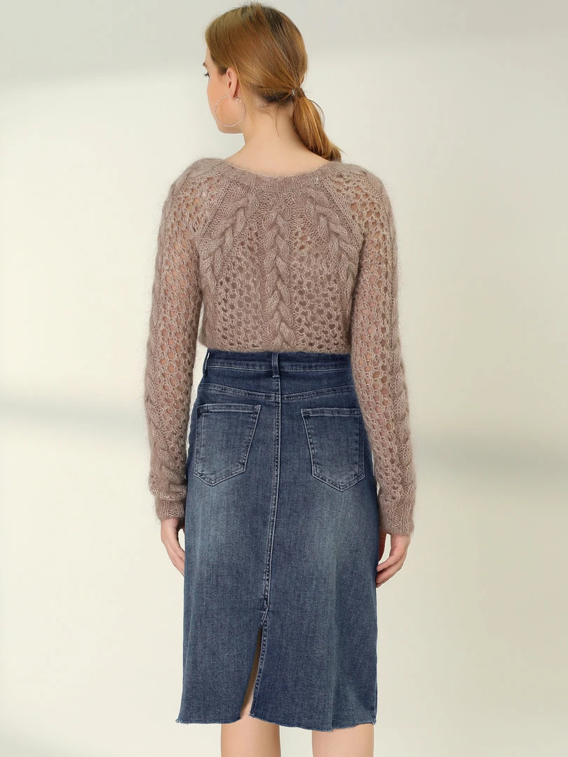Allegra K Women’s Casual Jean Skirt High Waisted Back Vent Short Denim Skirts