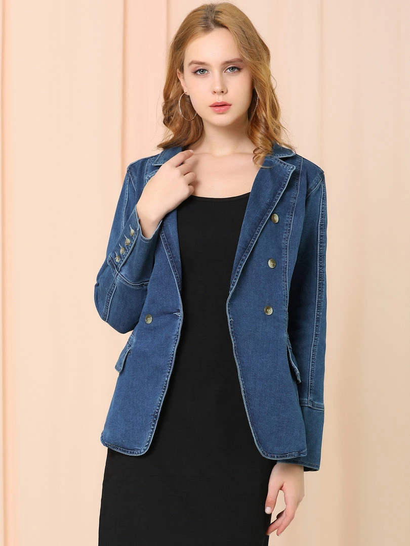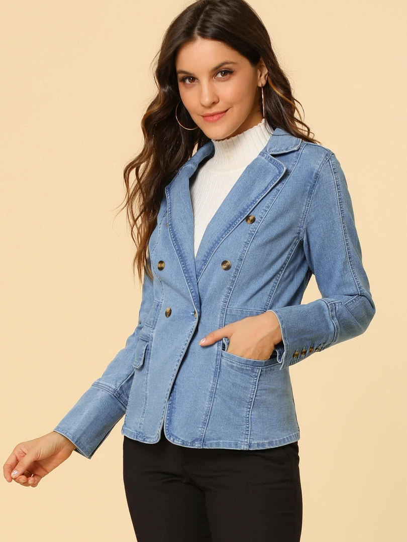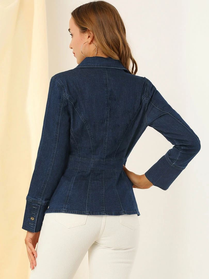 Allegra K Women’s Casual Lapel Jeans Long Sleeve Denim Jacket W Pockets