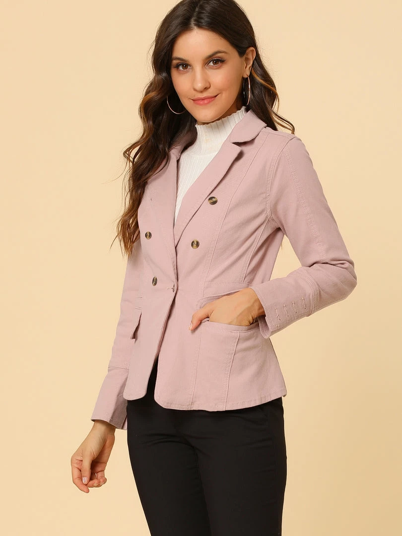 • Made from soft and comfy cotton fabric, this denim jacket adds sophisticated style to your ensemble with its notched collars, double-breasted, four-button front closure.