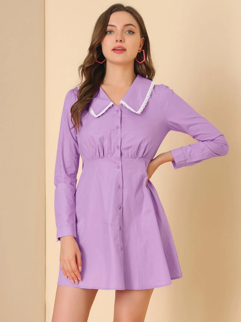 Allegra K Women’s Casual Peter Pan Collar Long Sleeve Cotton Button Front Shirt Dress