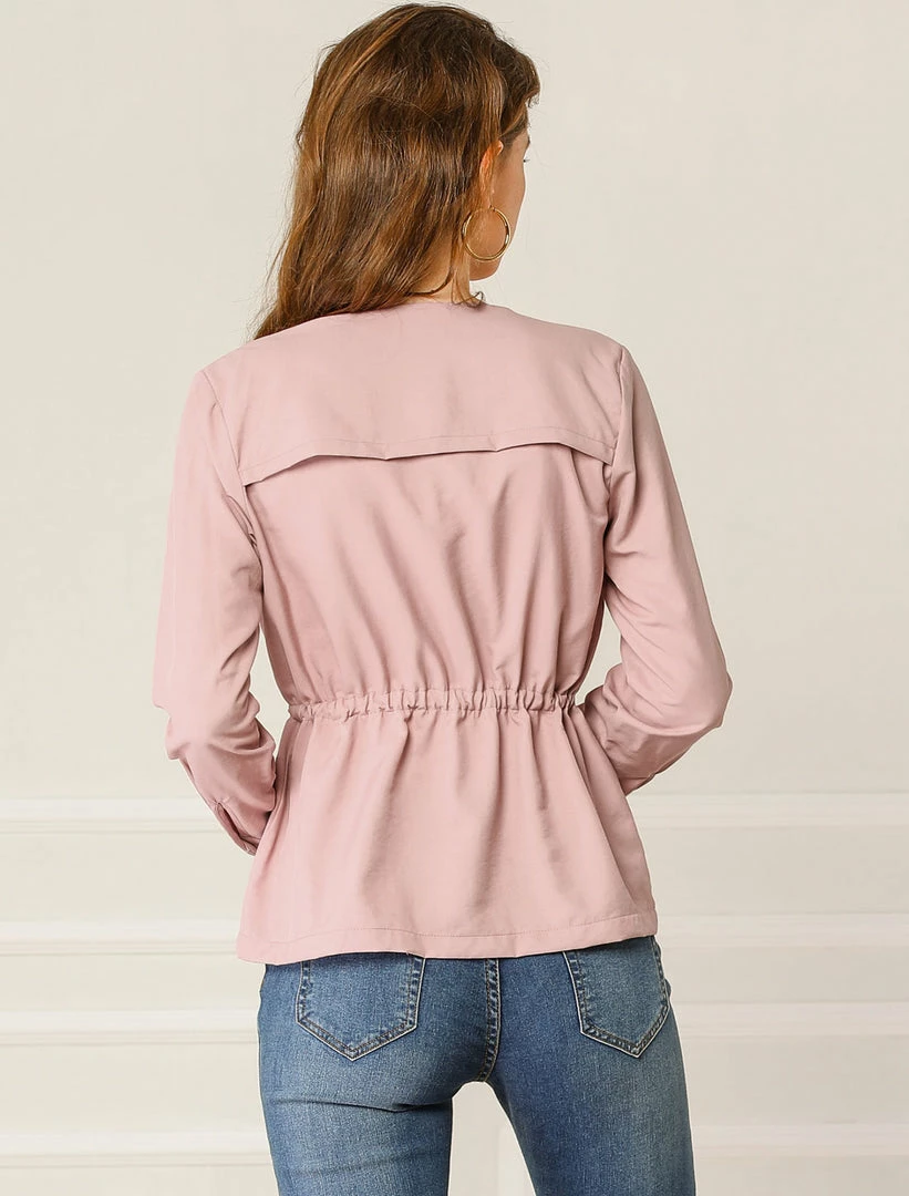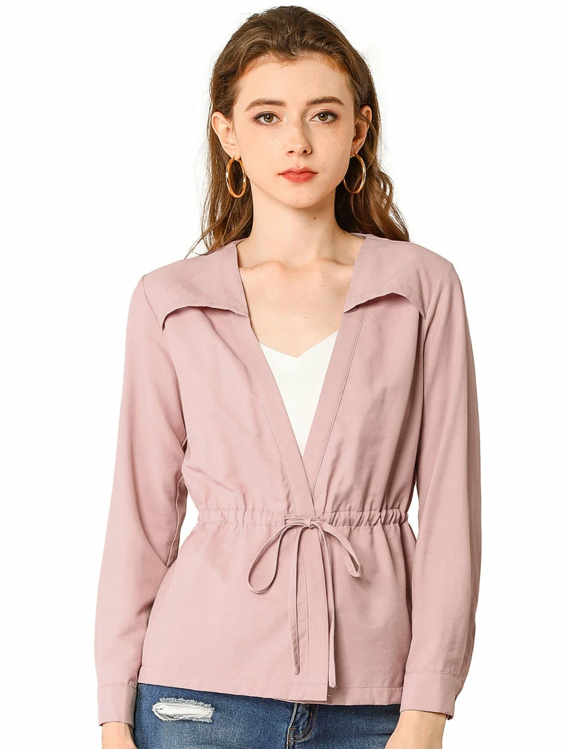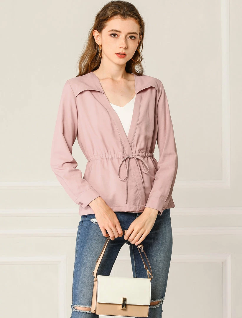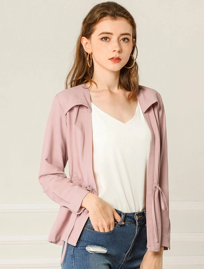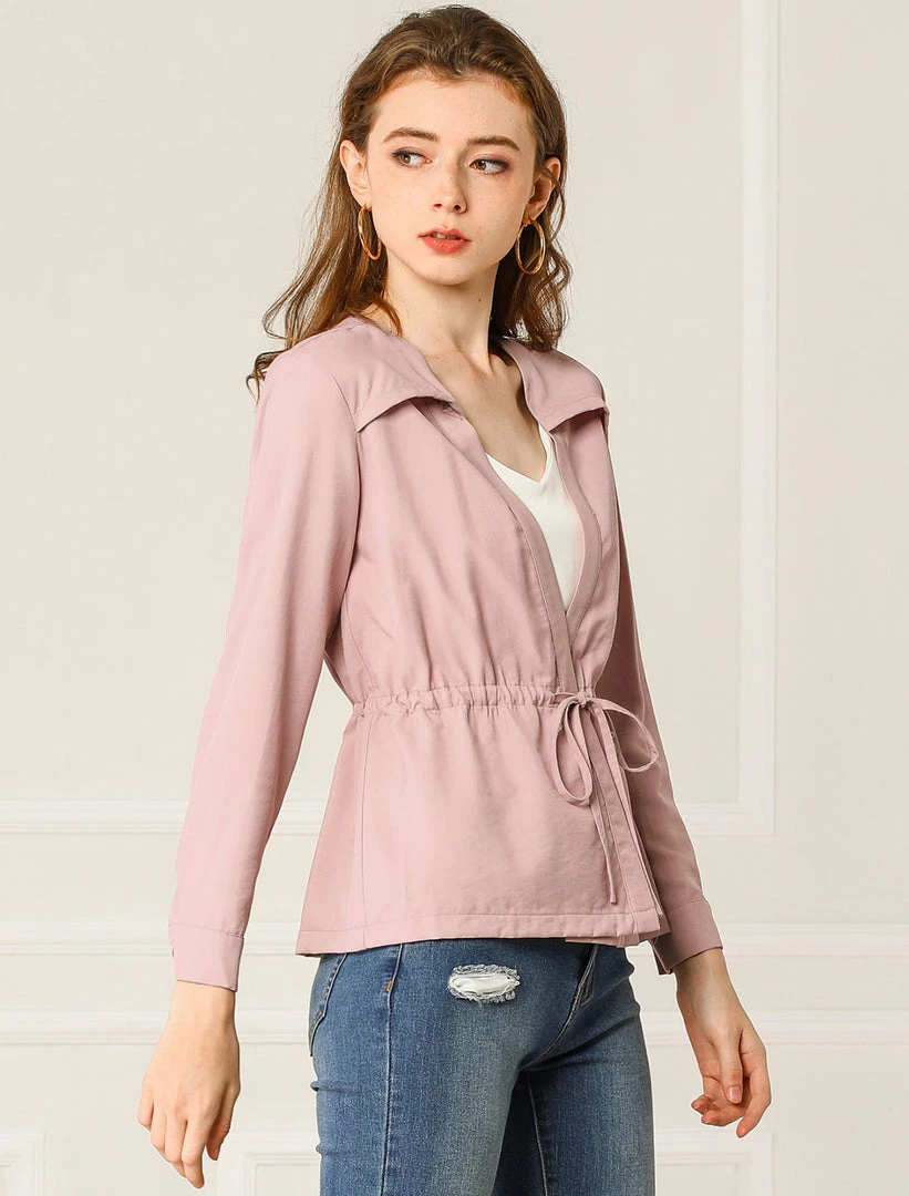 Allegra K Women’s Casual Solid Color Drawstring Waist Long Sleeve Thin Jacket