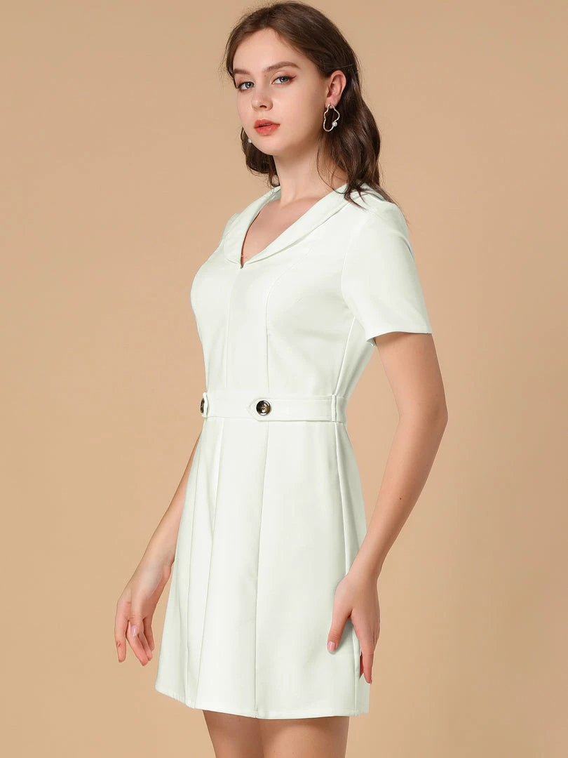 Allegra K Women’s Causal Button Decor Collar V Neck Short Sleeve Flare Dress
