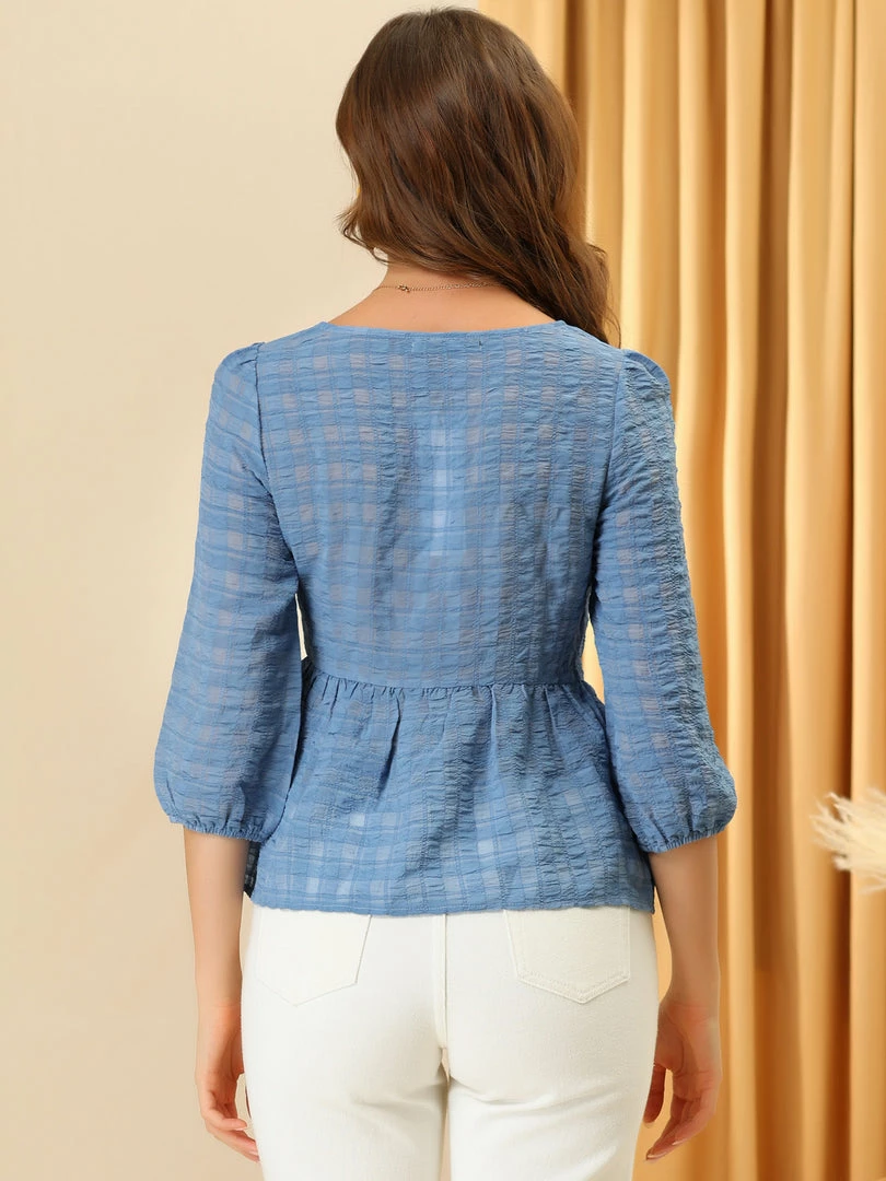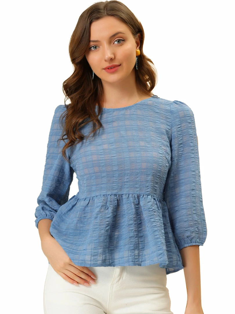 Allegra K Women’s Chiffon Blouse Mesh Gathering Bubble Sleeve Peplum Shirts