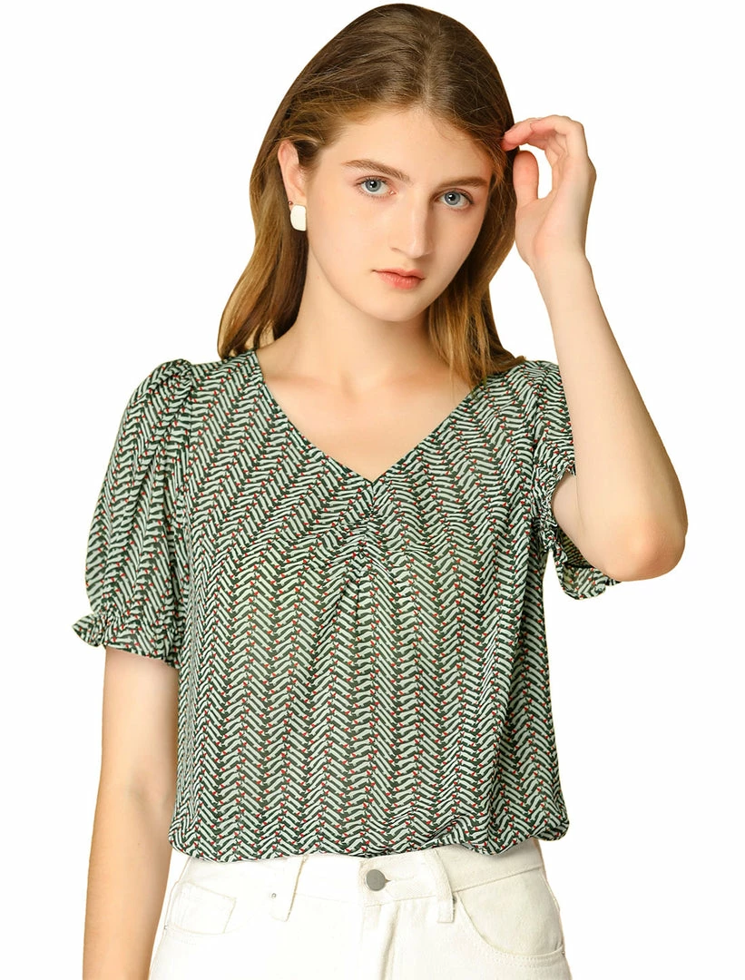 Allegra K Women’s Chiffon Short Sleeve Tops Blouses Ruffle Dog Printed Tee Shirts