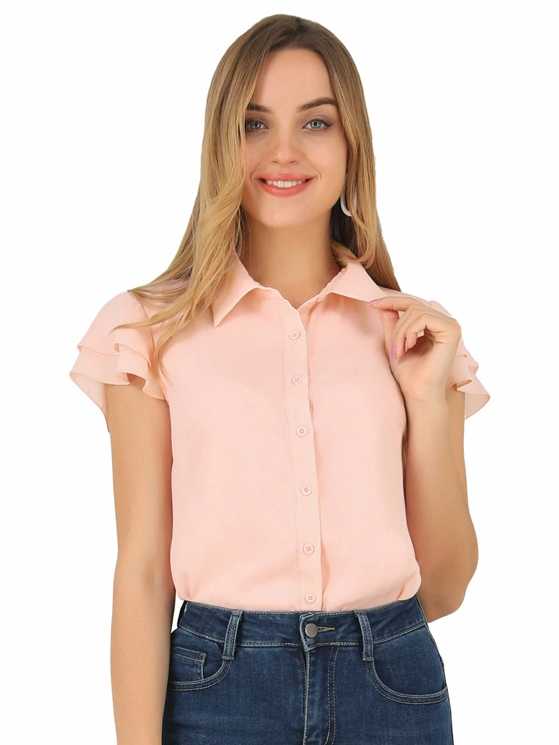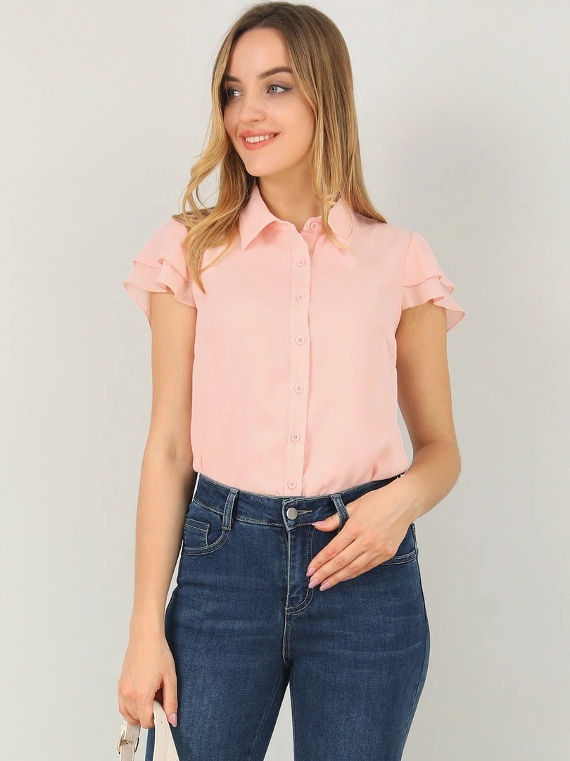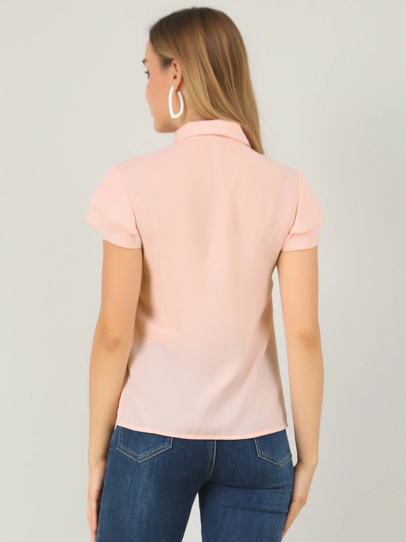 Allegra K Women’s Chiffon Top Blouse Turn Down Collar Layers Short Sleeve Button Up Shirt
