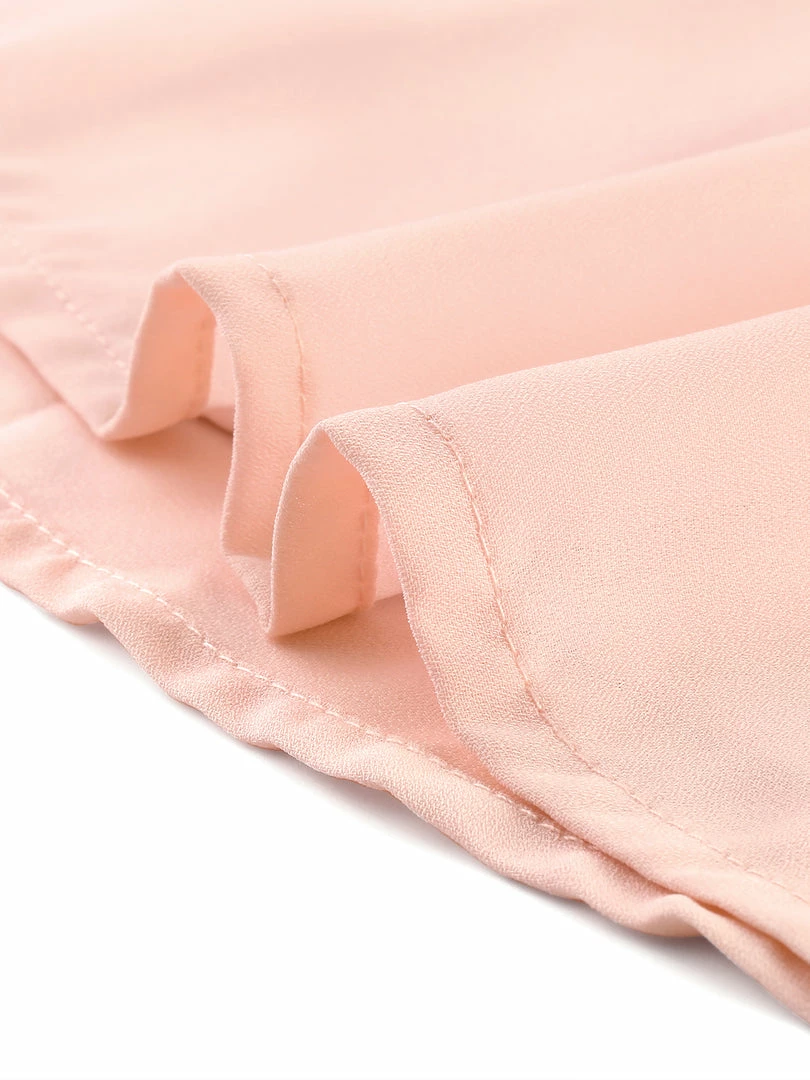 • Relaxed Fit, Layers Short Sleeve, Chiffon Fabric, Button Front, Full Placket, Turn Down Collar, Solid Color
