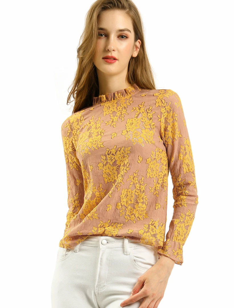 Allegra K Women‘s Chroect Lace See Through Floral Color Block Blouse