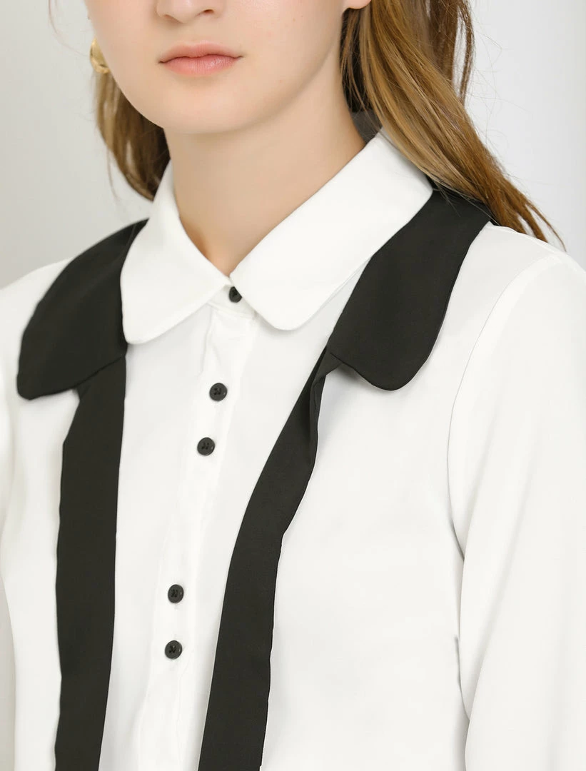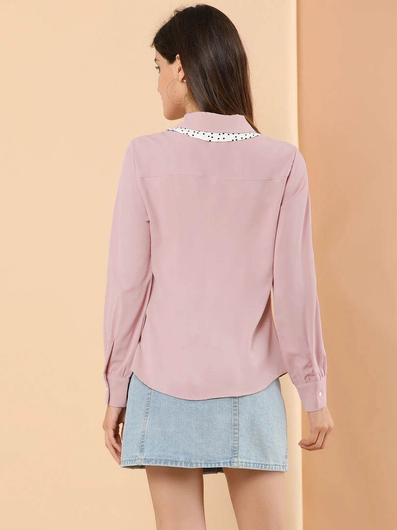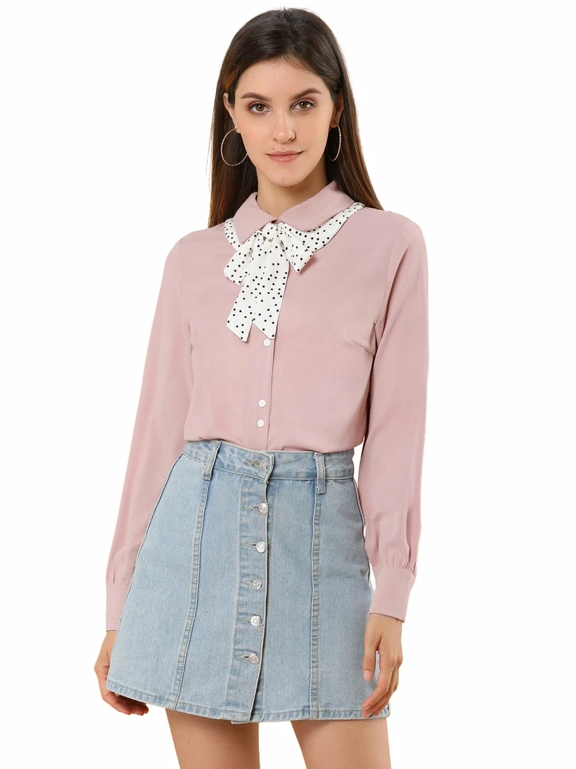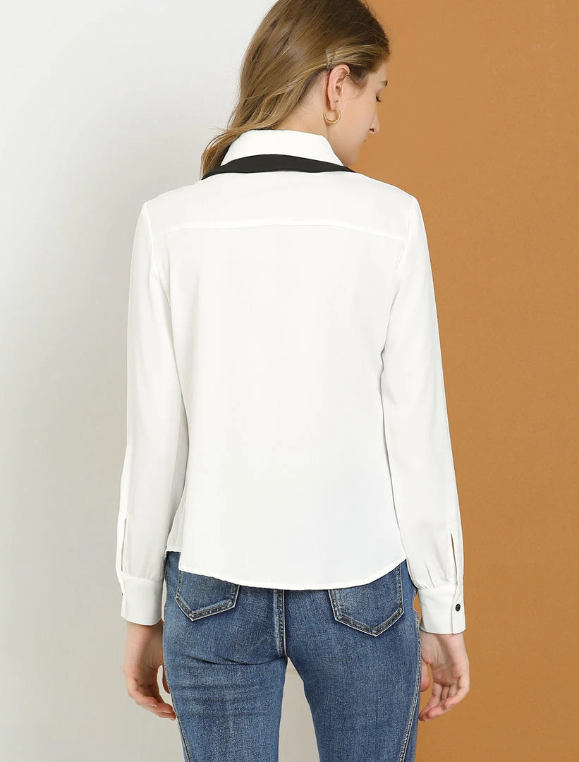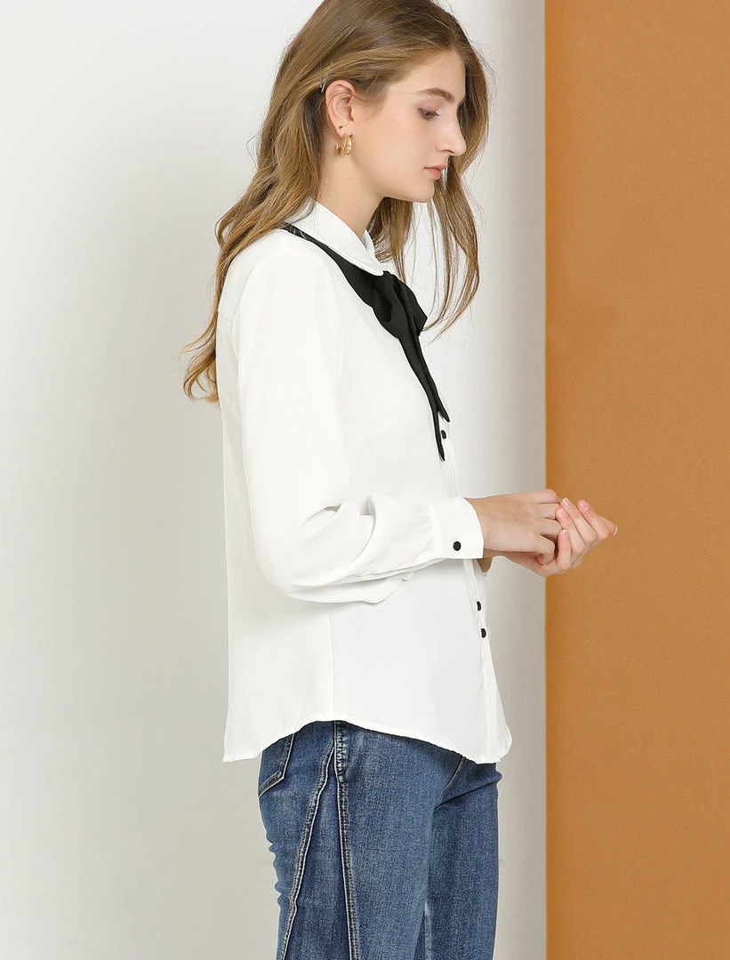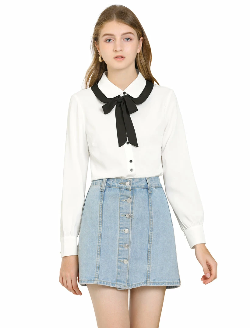 Allegra K Women’s Contrast Color Work Office Bow Tie Peter Pan Collar Shirt
