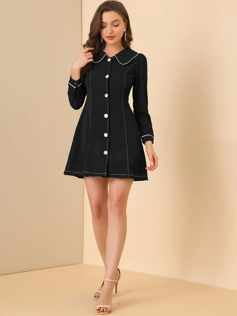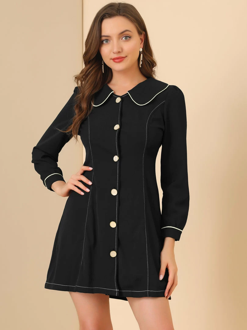 Allegra K Women’s Contrast Trim Peter Pan Collar Button Front Shirtdress